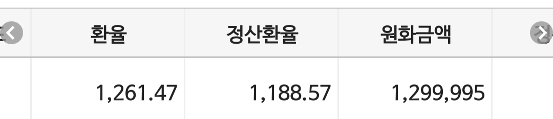 당시에 가환율인 1261.47원으로, 원화금액 약 130만원 환전을 신청했는데요.