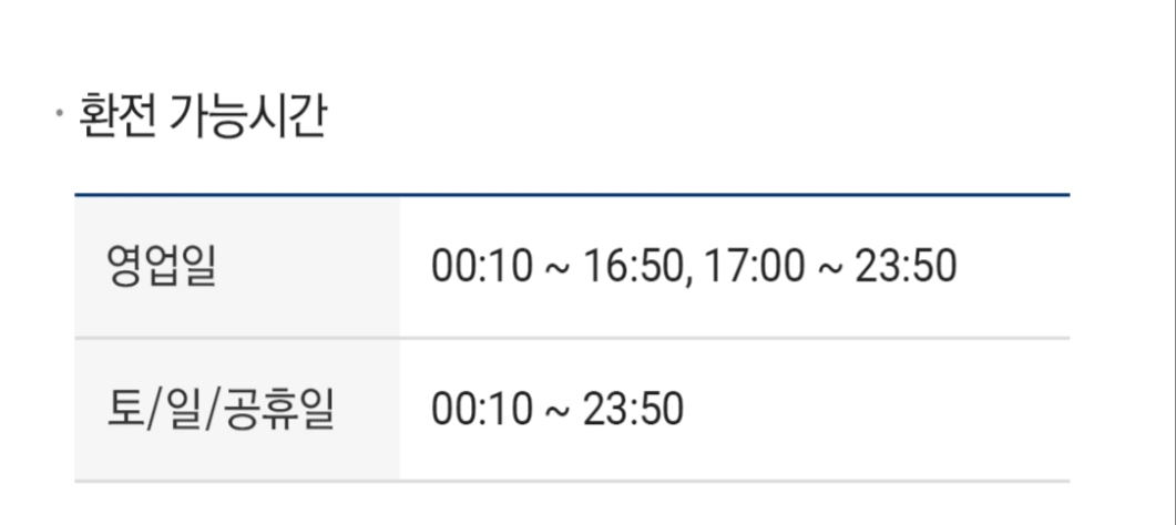 환율이 1년 365일 24시간 변하면 좋겠지만 실상은 그렇지 않답니다. 딱 은행 고시환율이 알려줄 때만 변하는데요. 밤늦게 환전하시는 투자자에게는 그 날 17:00의 환전 금액이 적용되는 것이 아니라 다음 날 아침 은행고시환율로 일괄정산한다고 보시면 됩니다!
