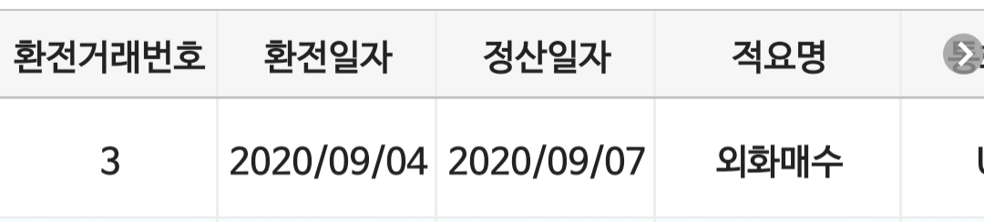 제가 9월 4일 밤에 환전한 내역을 확인할 수 있었습니다. 정산일자는 9월7일로 제 날짜에 정산금액이 입금되었네요.