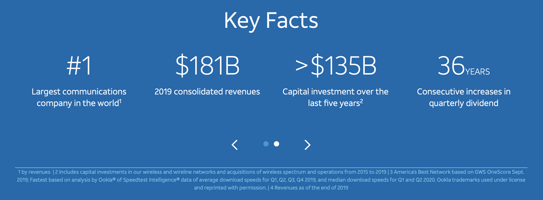 AT&T investor relations 홈페이지에 접속하면, 이 회사에서 주주(투자자)에게 알리고자 하는 8가지의 강점을 확인할 수 있는데요. 하나하나 소개해보도록 하겠습니다.