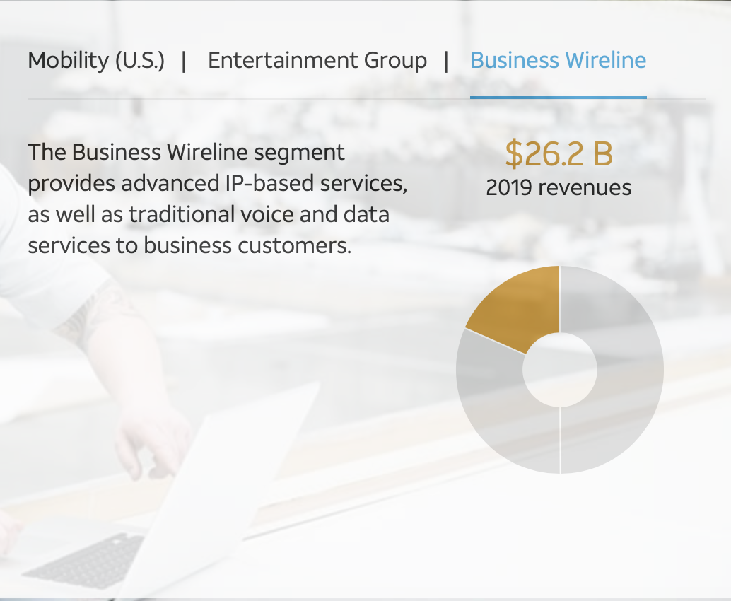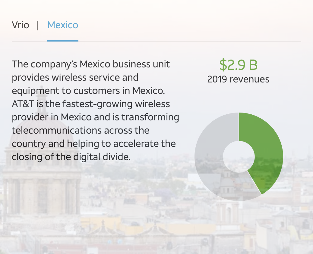 전 사업에서 71백만 불이라는 가장 큰 파이(이익)를 차지하는 사업은 바로 미국 본토에서의 이동통신사업인데요. 고객에게 통신망을 제공하는 조건으로 요금을 받는 형태로 얻는 이익입니다. 스마트폰 요금이 될 수도 있고, 인터넷요금도 이에 포함됩니다. 타임워너 인수 전, T의 주력 사업이기도 했고 지금까지도 가장 큰 이익을 내고 있습니다.
