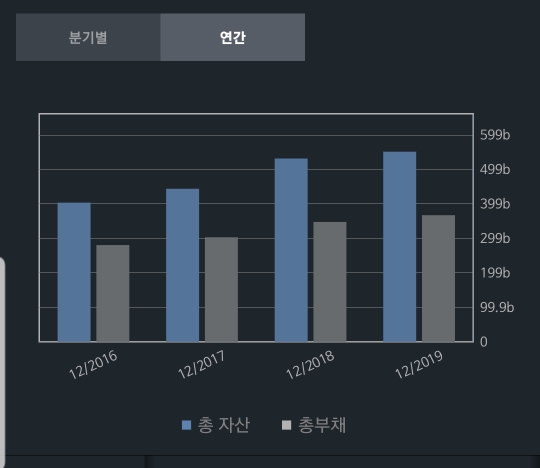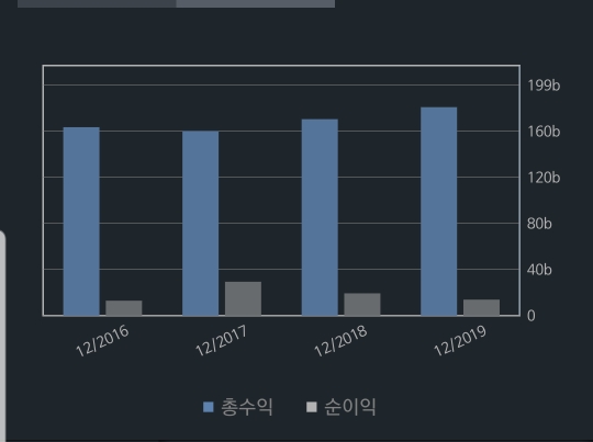 총 수익은 3년 연속 늘어나고 있는 반면에 순이익은 아쉽게도 감소하고 있는 추세입니다. 비용으로 차감되는 것들이 많은가 봅니다.