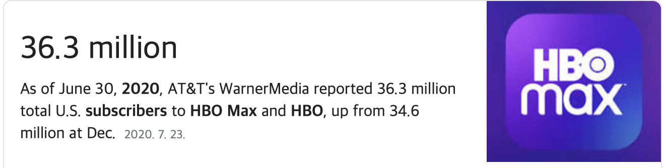 워너브라더스는 해리포터, 왕좌의 게임 등의 양질의 영화 및 티비 프로그램을 제작하는 것으로 유명합니다. T에서 본격적으로 HBO max라는 OTT서비스를 제공하려는 움직임을 보기고 있는데요. OTT서비스를 위해 타임워너를 인수했다고 말해도 무방합니다. 작년에는 14.4백만 불의 이익을 냈고, 워너브라더스 영화와 터너미디어, HBO 콘텐츠를 HBO MAX라는 스트리밍 사이트로 송출하면서 좀 더 파이를 넓혀나가는 것이 T의 목표일 겁니다.