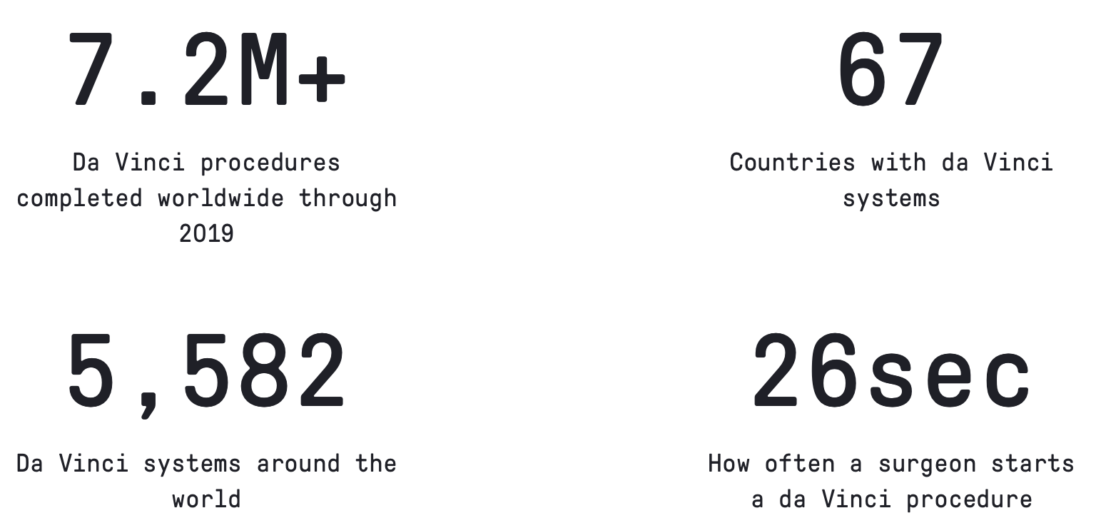2019년까지 다빈치 로봇은 전세계적으로 720만 건 이상의 수술을 완료했고요. 67 개국 5,582개의 기관(병원 등)에서 다빈치 로봇을 도입하고 있다고 합니다.