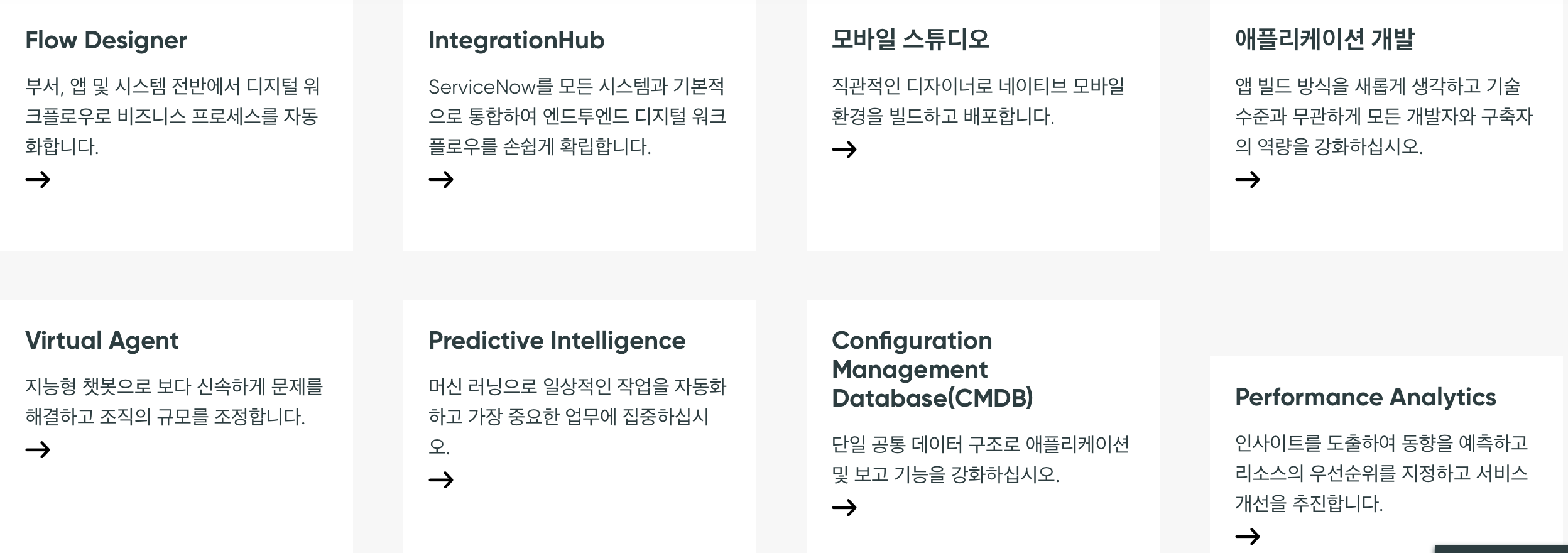 위에 적은 기능을 포함해서 서비스나우와 협력 시에 실현 가능한 것들이 나열되어 있습니다. 지능형 챗봇으로 보다 신속하게 문제를 해결하고 조직의 규모를 조정하는 서비스도 있는데 규모 조정이라니 살짝 섬뜩하네요ㅎㅎ