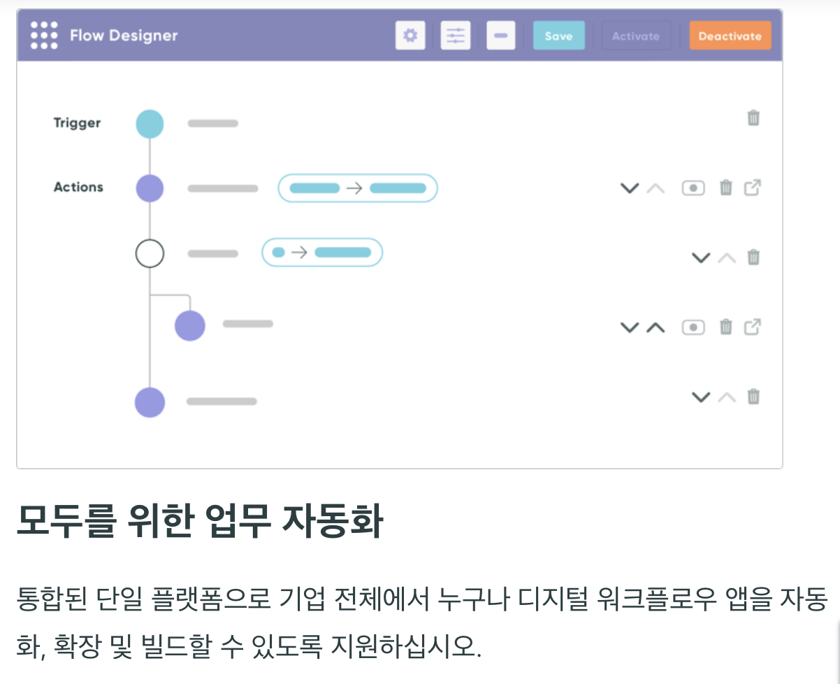 뿐만 아니라, 아예 코딩을 모르는 일반 직장인도 어플리케이션을 개발하는 것을 가능토록 하는 방법도 제공하고 있습니다. IT에 일면식이 없는 세일즈 분야의 일반 직장인이 코딩을 공부해서 필요한 어플리케이션을 제작한다고 예를 들어보겠습니다. 사실 그 어플리케이션이 앱 개발자가 만든 앱 정도의 수준을 낼 수 있을 것인가는 의문입니다. 그렇다고 해서 IT 부서가 그 업무를 담당하기에는 세일즈 쪽의 업무 플로우를 명확히 알지 못합니다. 서비스나우의 코딩 없는 편리한 앱 개발 서비스는 이러한 문제점을 개선할 수 있습니다.