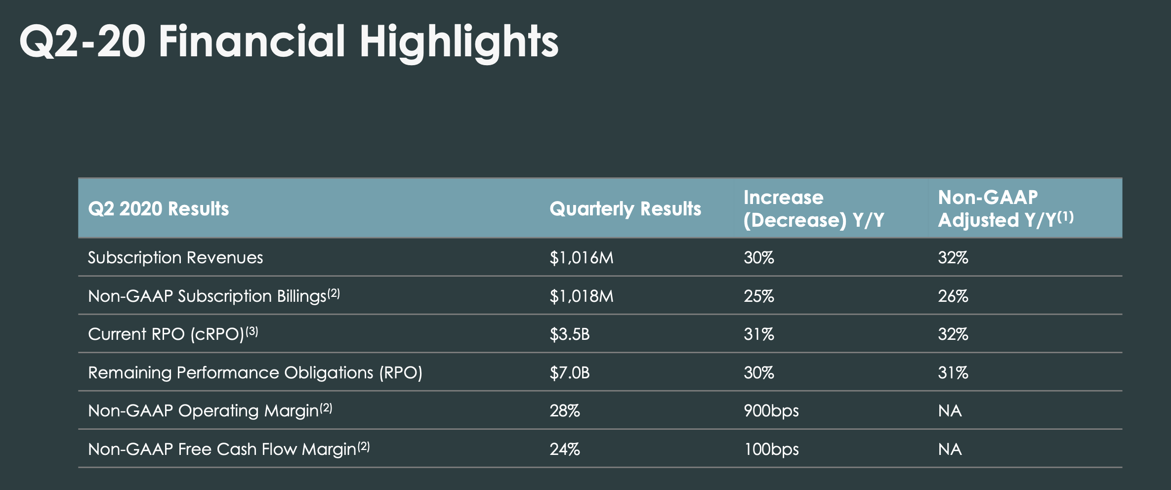 서비스나우는 오토데스크, 어도비와 같은 소프트웨어처럼 구독 모델을 기반으로 하고 있습니다. 구독 매출은 지속 가능한 매출이기 때문에 구독 모델이 부상하고 있는 중대한 이유이기도 합니다. 2분기 매출은 10.16억달러를 기록하면서 1분기 매출인 9.95달러를 상회하였으며 전년대비 30% 상승한 매출액입니다. 영업이익률은 28%를 기록해 전 분기 대비 5% 증가해 개선된 영업이익률을 보이고 있고요.