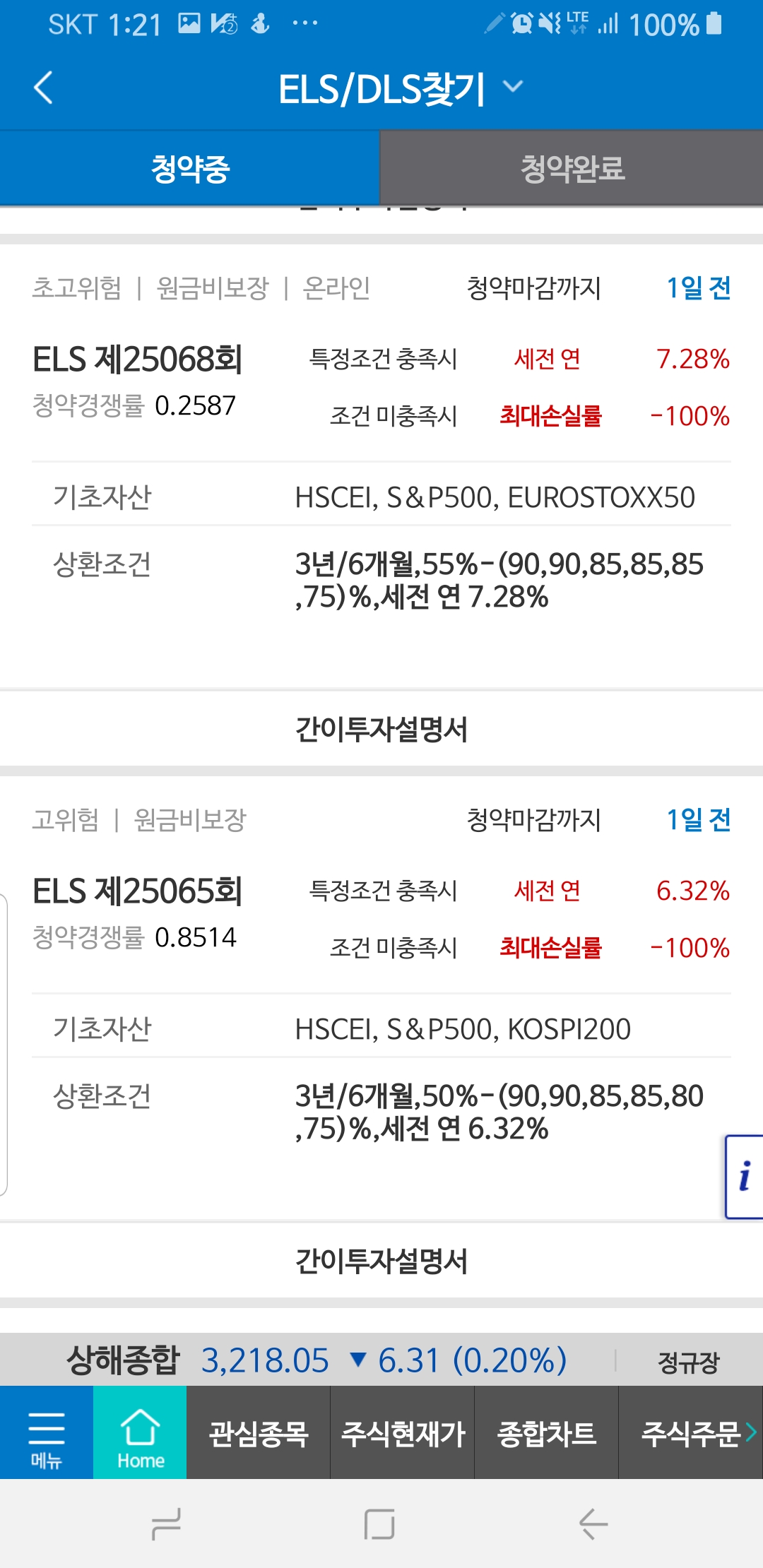 아래는 일반 계좌에서 청약 가능한 ELS 리스트입니다.