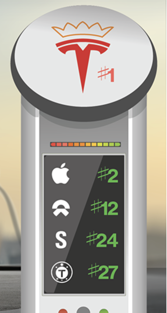 애플을 제치고 1위를 차지한 테슬라와 그 밑에 니오 등의 전기 운송수단 관련 종목들이 줄지어 적혀있는 인포그래픽이 인상적입니다.