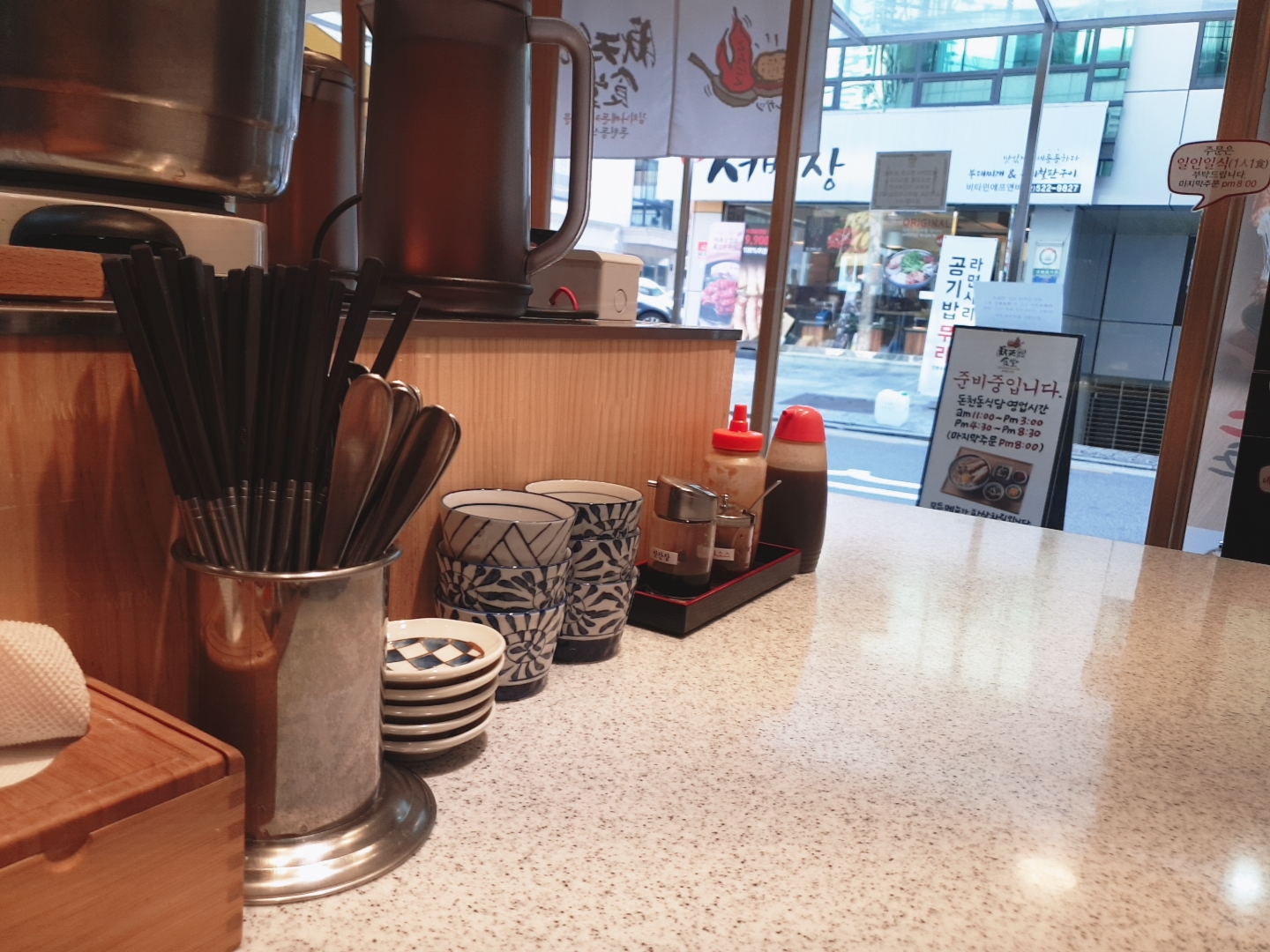 나머지 소스나 식기류들은 바로 앞에 마련되어 있어 직접 세팅하시면 되는데요. 아무래도 여러 명이서 가기에는 협소하기도 하고, 좌석이 애매합니다. 다만 혼밥 또는 두 명 식사로는 적합합니다.