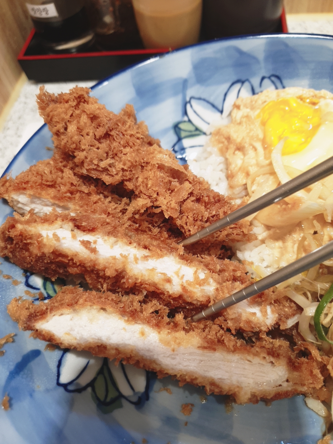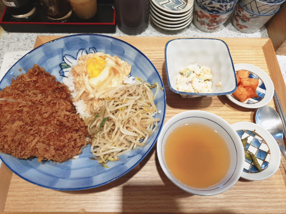 얼마 되지 않아 금방 나온 가츠동입니다. 이 곳의 특징은 가츠동에 숙주나물볶음이 나온다는 점, 가츠동소스가 있는 듯 없는 듯 하게 적셔 나온다는 점입니다. 사진을 너무 못 찍어서 맛없게 나온 듯 하지만 한끼 식사로 손색 없었습니다.