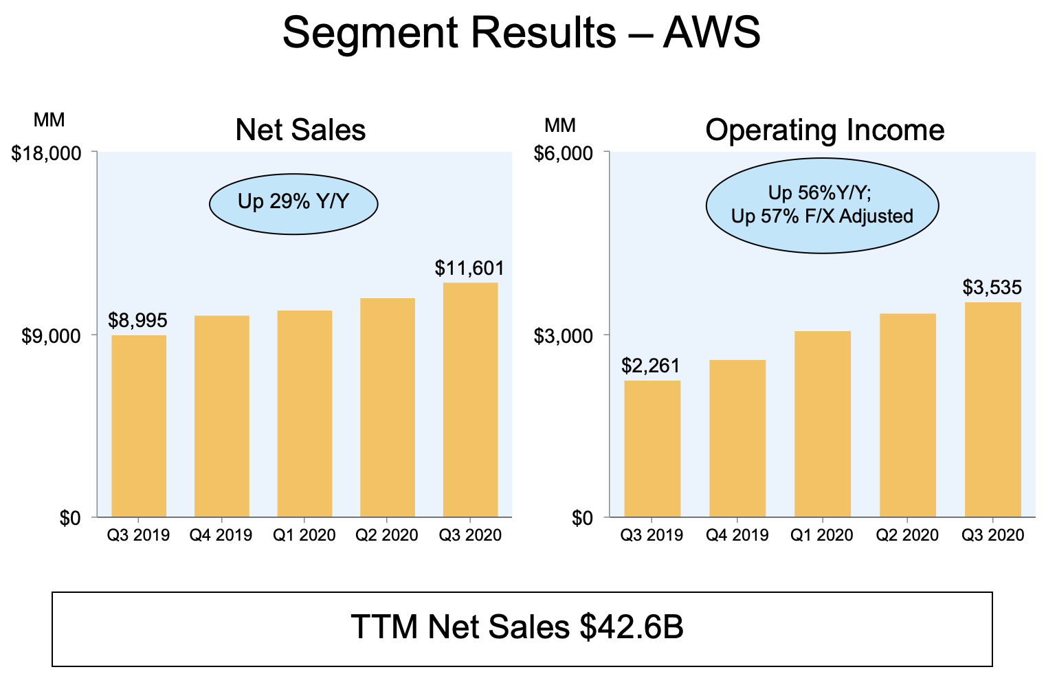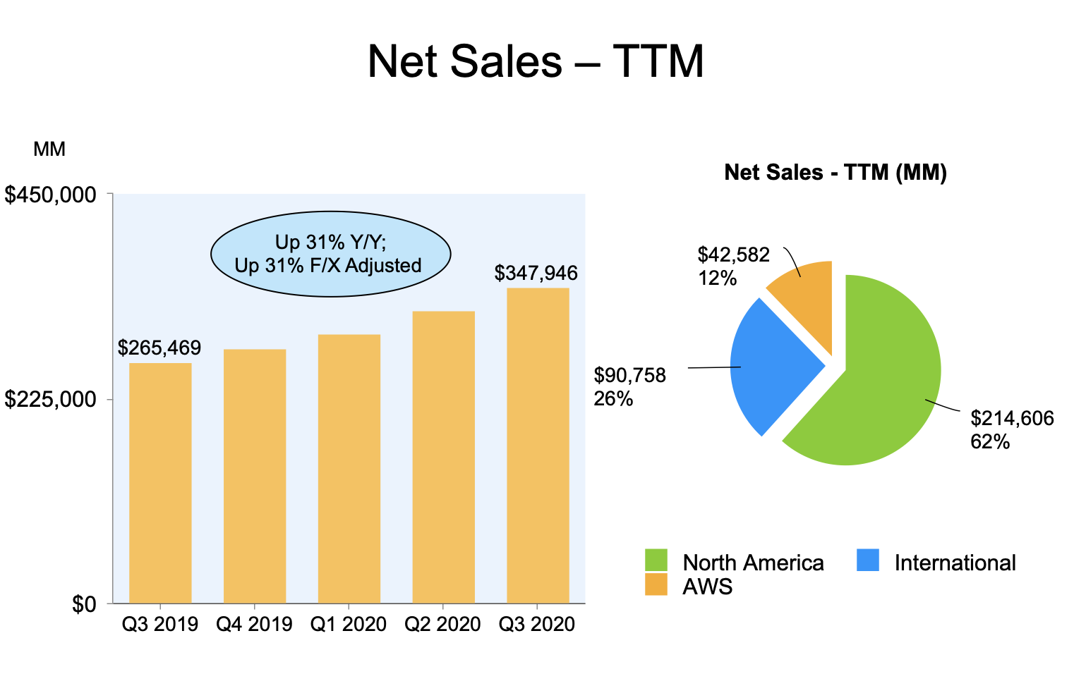 종합적으로 아마존은 지난 2019년의 3분기와 비교하여 아래와 같은 결과를 발표하였는데요.