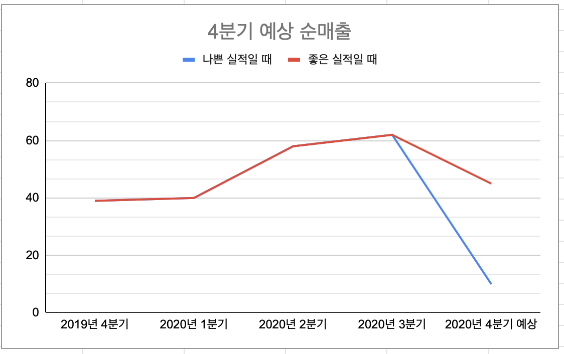 아마존은 3분기 실적 발표와 동시에 2020년 4분기 전망치 또한 발표하였는데요. 순매출이나 영업이익의 범위가 너무 큰 편이라 보자마자 이제 뭐지....? 싶었습니다.