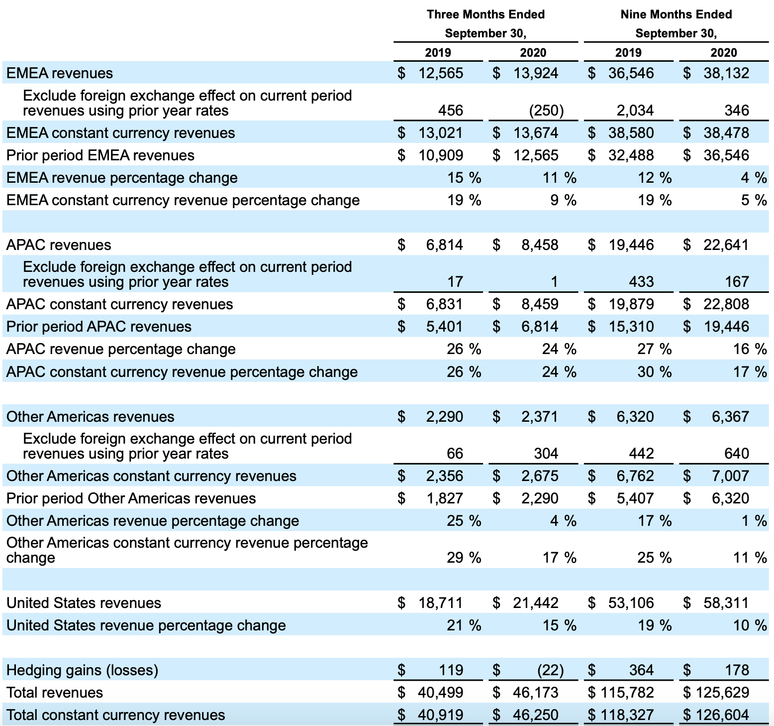 지역별 매출 비중에는 그렇게 큰 차이는 없습니다만, 아시아 매출이 작년 3분기 대비 24%가 증가하여 가장 큰 성장세를 보여주었는데요. 중국이 유튜브 접속이 제한되어 있어 큰 인구가 제외됨에도 불구하고 아시아 매출이 성장했다는 것은 중국 외 아시아에서 성장세가 가파름을 보여줍니다. 24%의 성장세를 보였지만 전체 매출에서는 1%의 차이뿐입니다. 구글도 미국이 메인이지요.