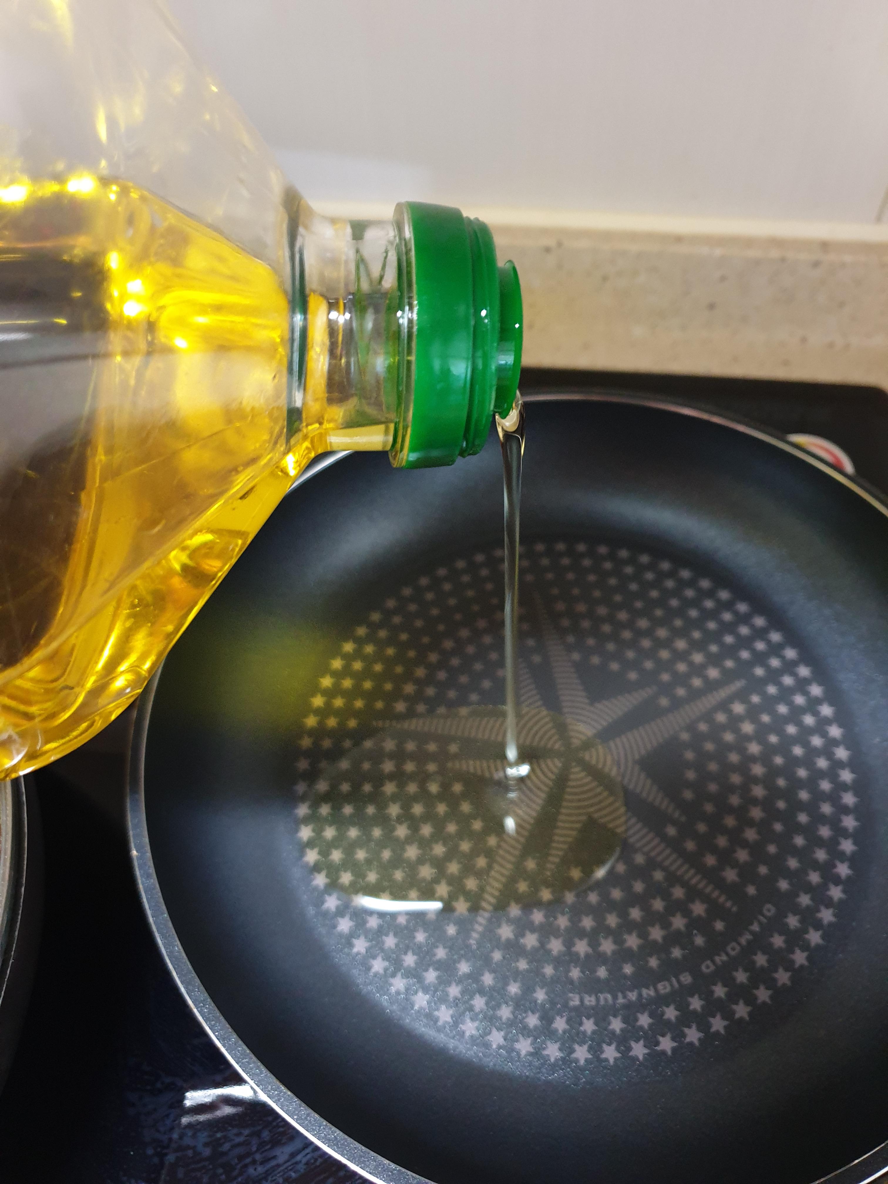 후라이팬에 올리브유를 넉넉하게 두르고, 마늘을 구워볼게요. 인덕션 기준(0~9)으로, 4 정도로 두고 마늘을 구웠어요. 어차피 바질페스토에 다시 볶아야 하기 때문에, 저는 노릇노릇하게는 굽지 않았습니다. 면을 끓고 나서 마늘을 구워주셔도 시간 상 문제는 되지 않아요.