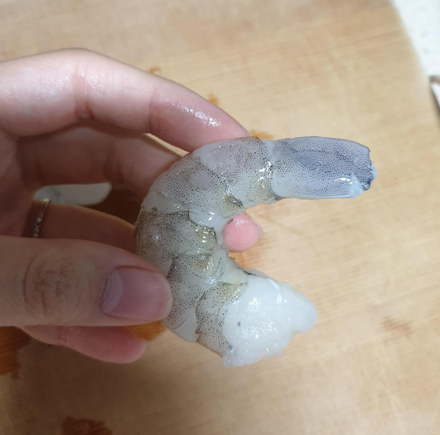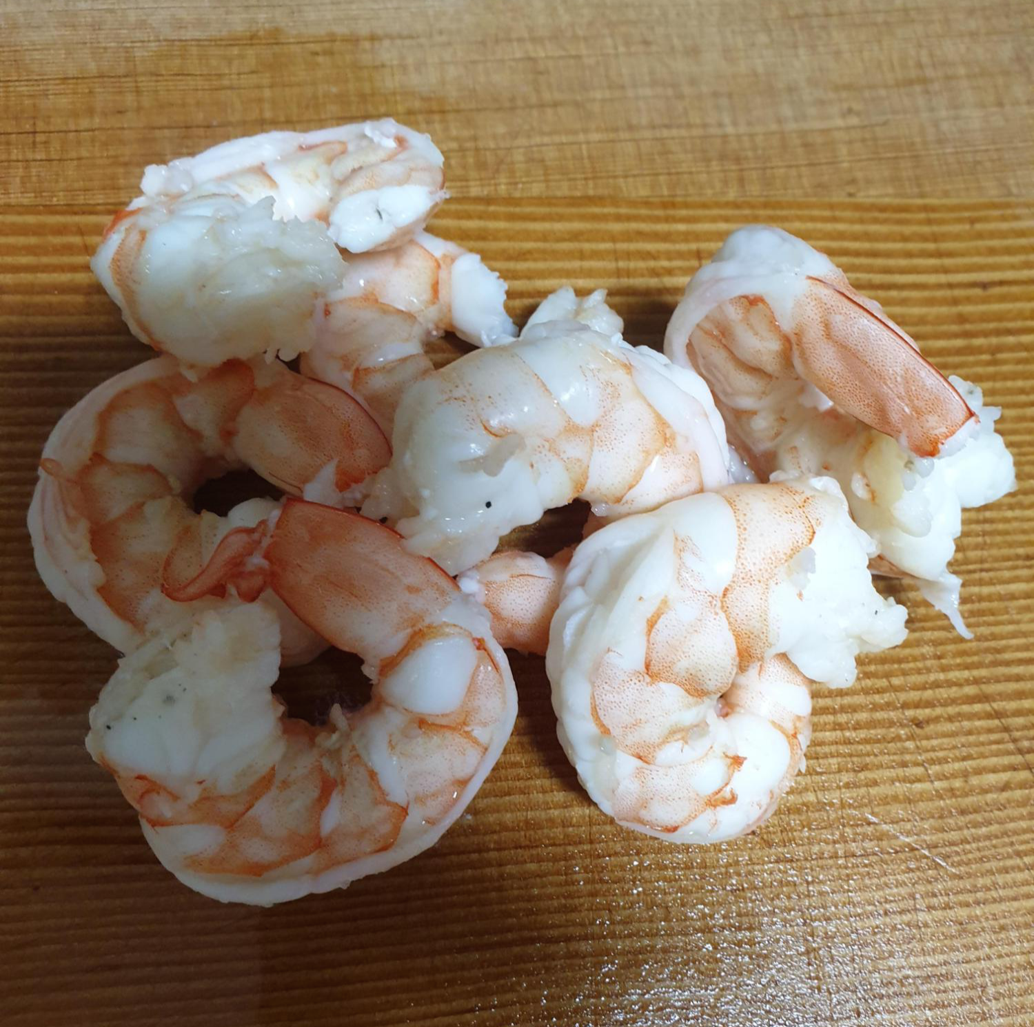 살짝 삶았는 데도 쪼그라든 새우살....ㅠ_ㅠ 그래도 이 정도면 식감은 통통하니 맛있을 것 같아요.