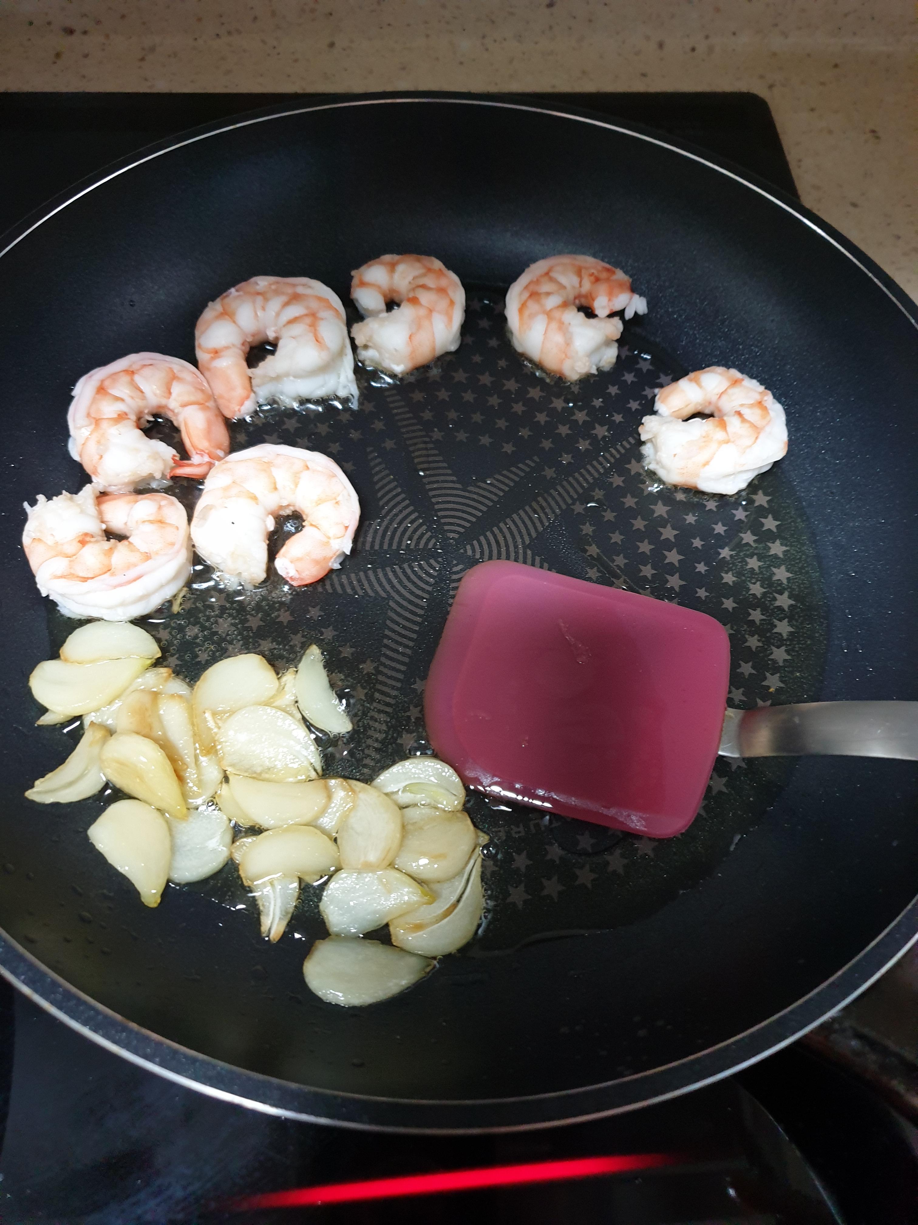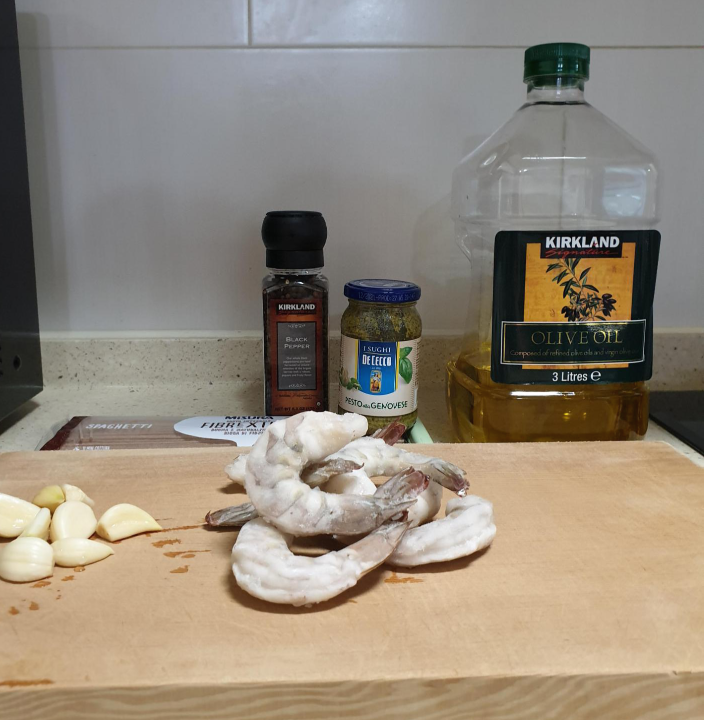 재료는 1인분 기준입니다. 마늘 8개, 새우 7개, 후추, 바질페스토, 올리브유, 파스타면, 소금이구요. 마늘이나 새우는 기호와 상황에 맞게 양을 변경하셔도 됩니다. 새우 대신 베이컨을 넣으셔도 되고, 새우와 베이컨 동시에 넣어도 근사한 한 끼가 되겠습니다~