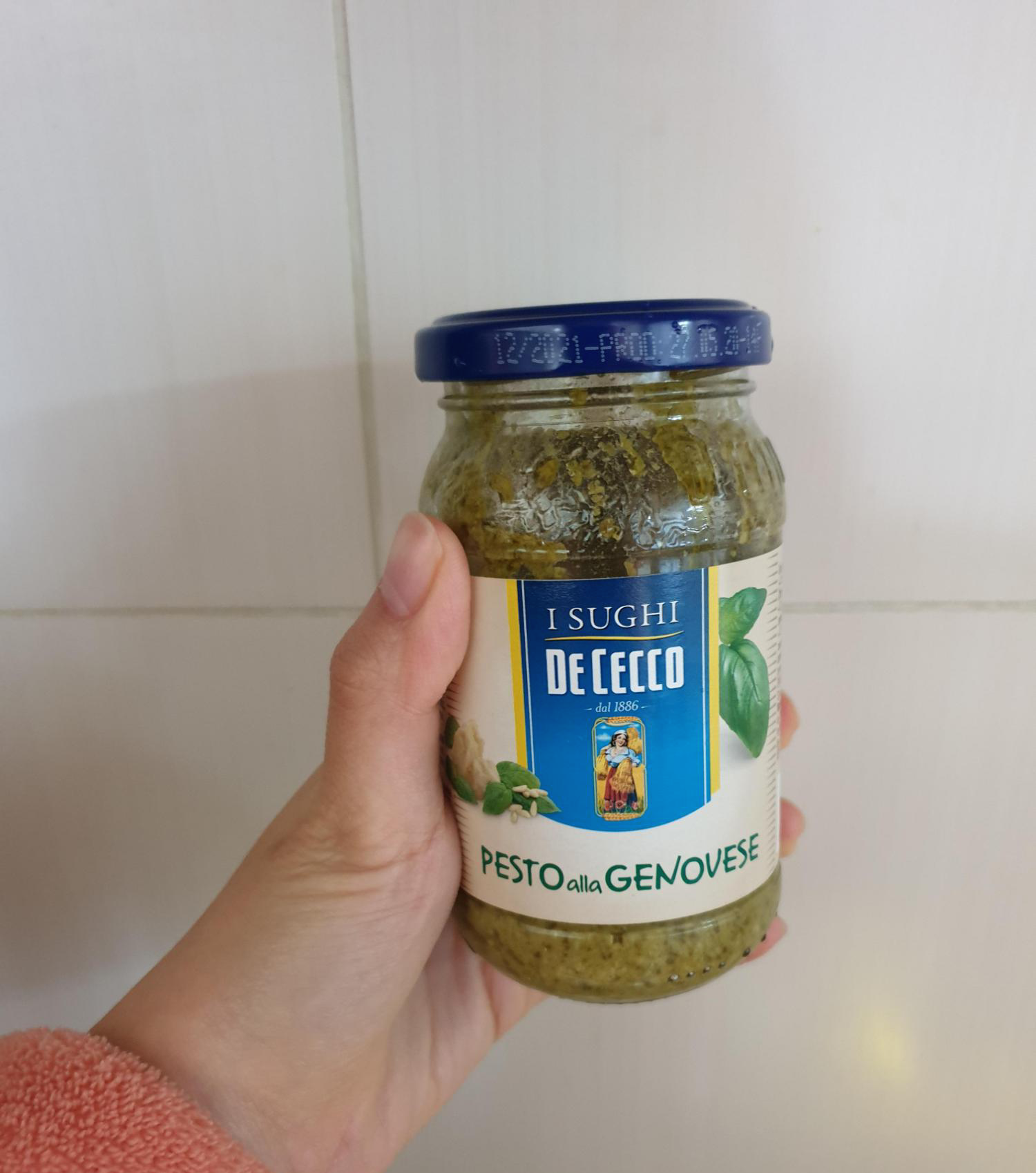 바질페스토파스타에서 빠질 수 없는 재료는 '바질페스토'와 '파스타면'이라고 할 수 있겠지요~ 바질페스토는 대중적인 데체코 바질페스토를 사용했습니다. 집에서 바질을 키우긴 했지만 페스토를 만들 정도의 양이 되지 않아서 간편하게 사용한 시중 페스토를 픽했어요.