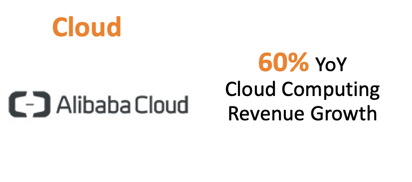 전년대비 증가율을 보시면, 알리바바 클라우드는 매출이 무려 60%나 증가하였습니다.