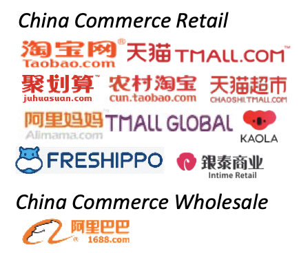 상단 좌측 브랜드들이 중국의 개인 소비자를 대상으로 한 웹사이트들인데 종류만 해도 10개나 되는 수준인데요. 애초에 알리바바의 사이트를 이렇게 많은 편이 아니었지만, 경쟁 기업들이 생기면서 인수합병 및 신설을 통해 경쟁우위를 점하려고 하는 모습입니다.