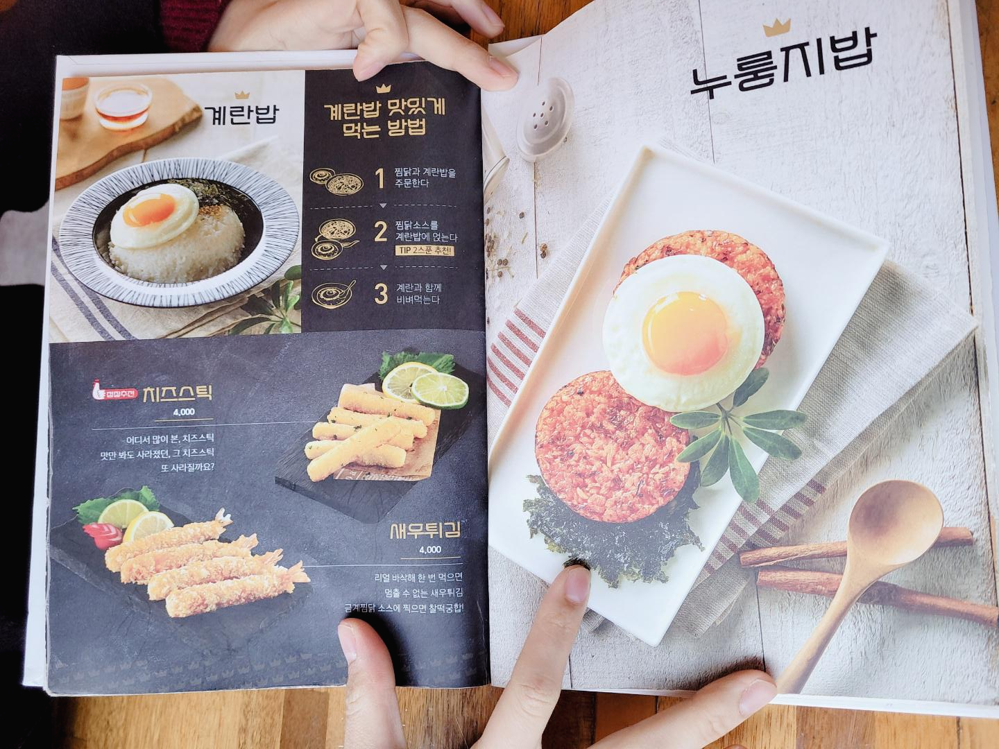 계란밥, 누룽지밥, 치즈스틱, 새우튀김까지 맛있는 것만 있네요~. 만약 셋이 왔다면 이것저것 시켰을테지만 다 못 먹으니 아쉽습니다.