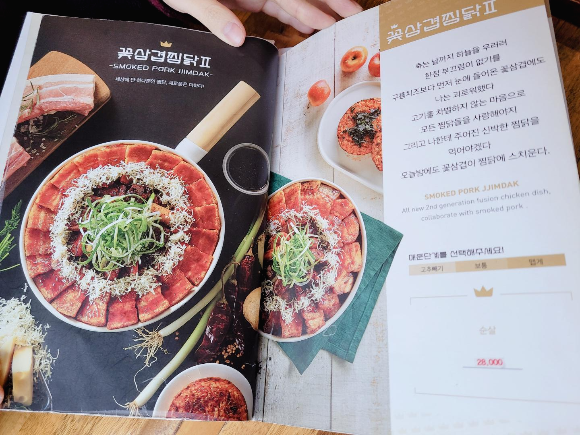 그 외로도 꽃삼겹찜닭이 있는데 이것도 버전 2인 것을 보면 예전부터 있던 메뉴인 듯 합니다. 치즈보다 삼겹을 좋아하시는 분들에게는 적합한 메뉴!!저희는 치즈...♡