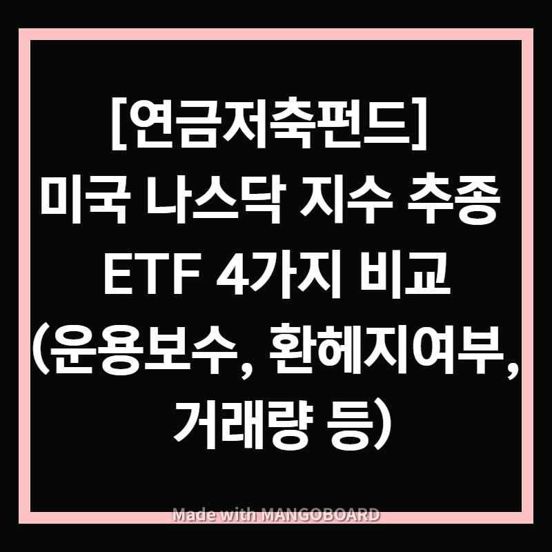 지금까지 미국 나스닥100 지수에 투자하는 국내 ETF 비교를 해보았는데요. 사실 동일 지수를 추종하는 ETF이기에 가장 중요한 것은 수수료와 환헤지 여부입니다. 펀드매니저의 투자실력이 해당 ETF에 반영되는 것도 아니구요.