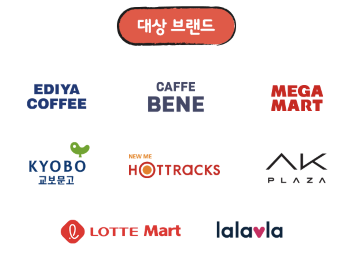방법2(매장에서 안전하게 비접촉 결제) 참여 브랜드는 이디야커피, 카페베네, 메가마트, 교보문고, 핫트랙스, AK플라자, 롯데마트, 랄라블라입니다.