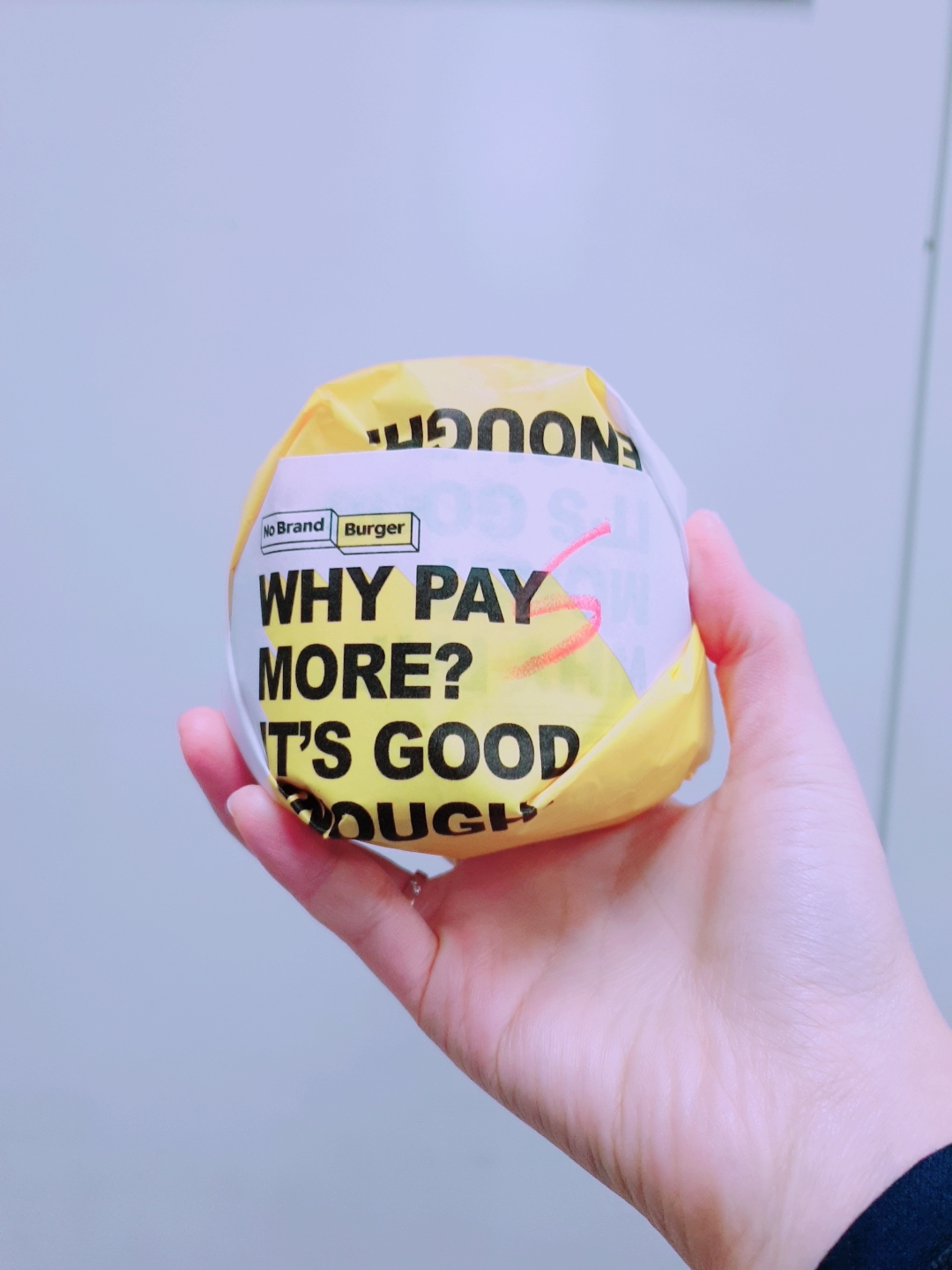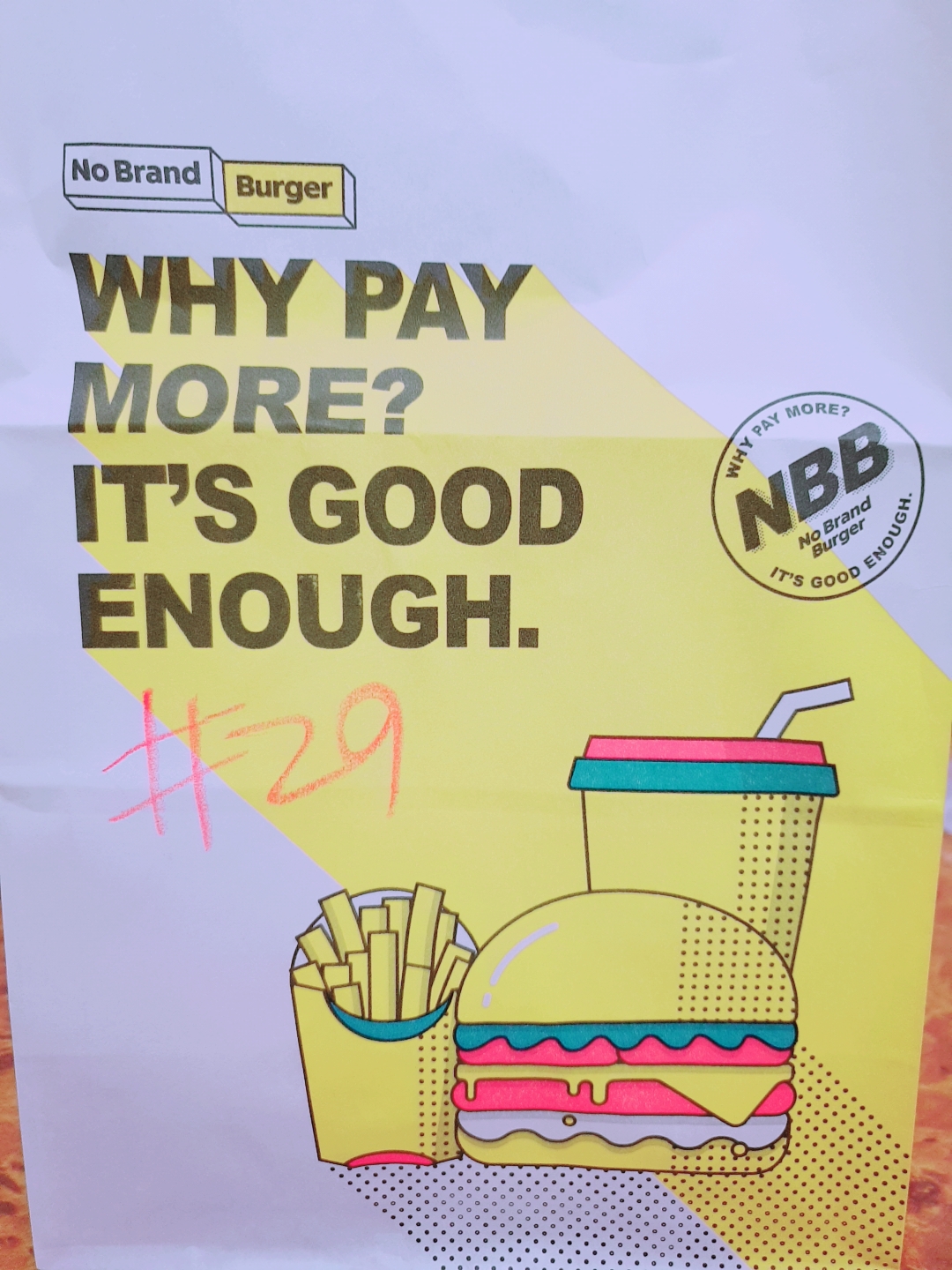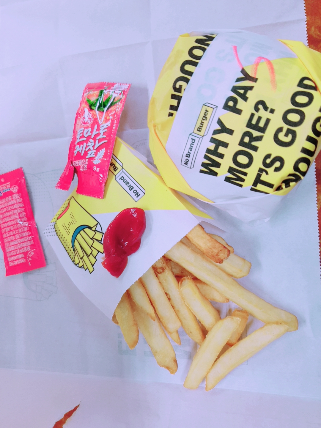 쇼핑백에 노브랜드버거의 대표 문구가 적혀있네요.