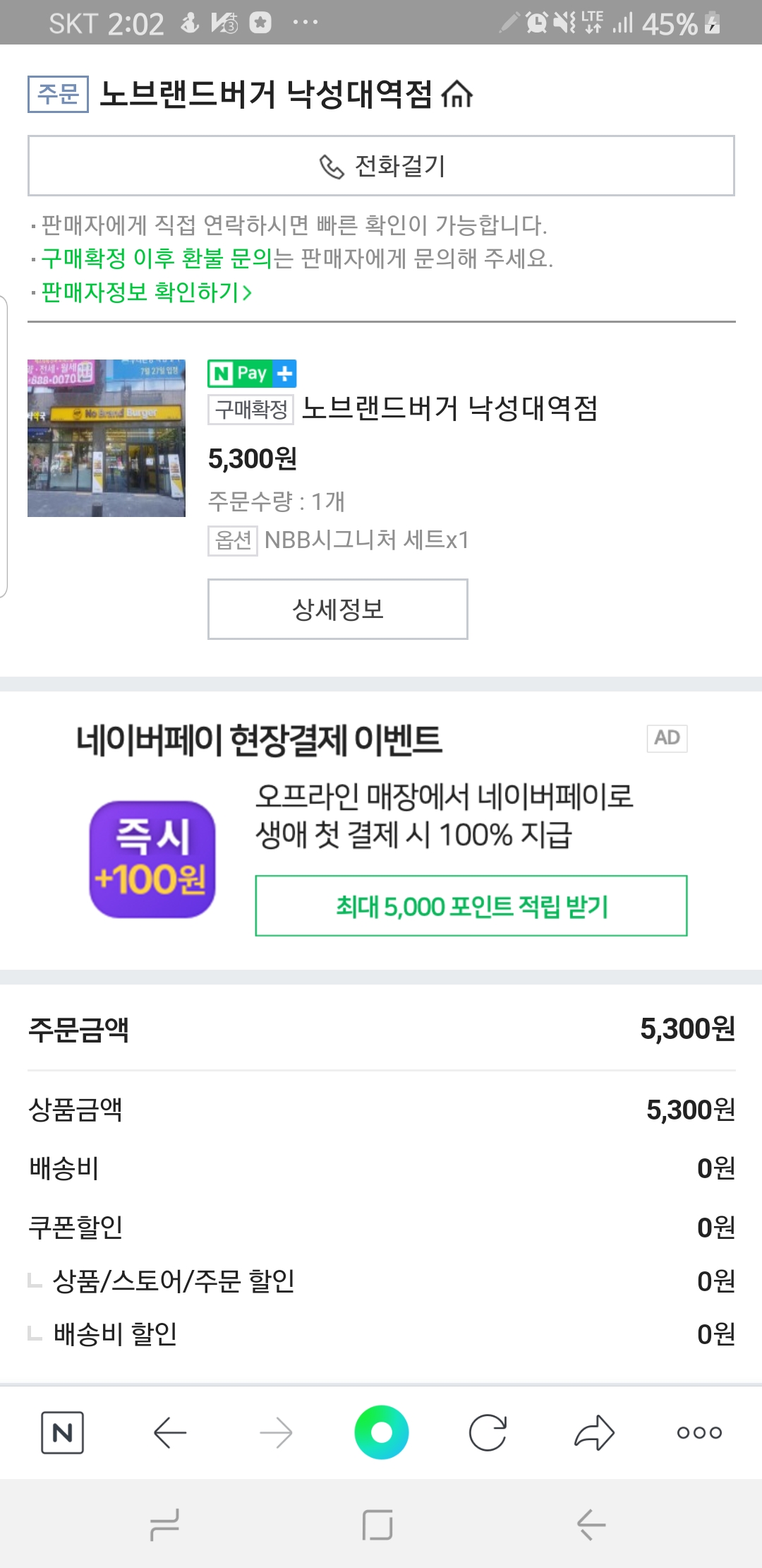 요즘 시국이 시국인지라 저는 매장에서 먹지않고, 포장해왔습니다. 네이버페이로 결제하면 포장주문 1,000원이 포인트로 페이백이 된다는 점, 참고하시기 바랍니다!
