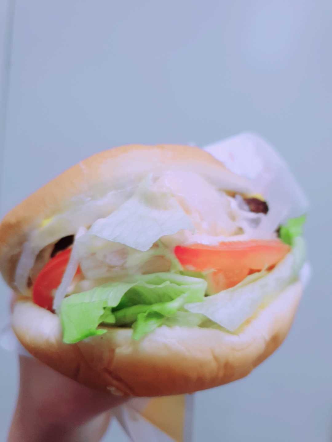 버거의 크기는 생각보다 크지 않았습니다. 제가 버거킹 와퍼 크기를 기대해서 그런걸까요...와퍼주니어보다는 크지만 와퍼보다 작은, 딱 맥도날드 크기의 햄버거였습니다.