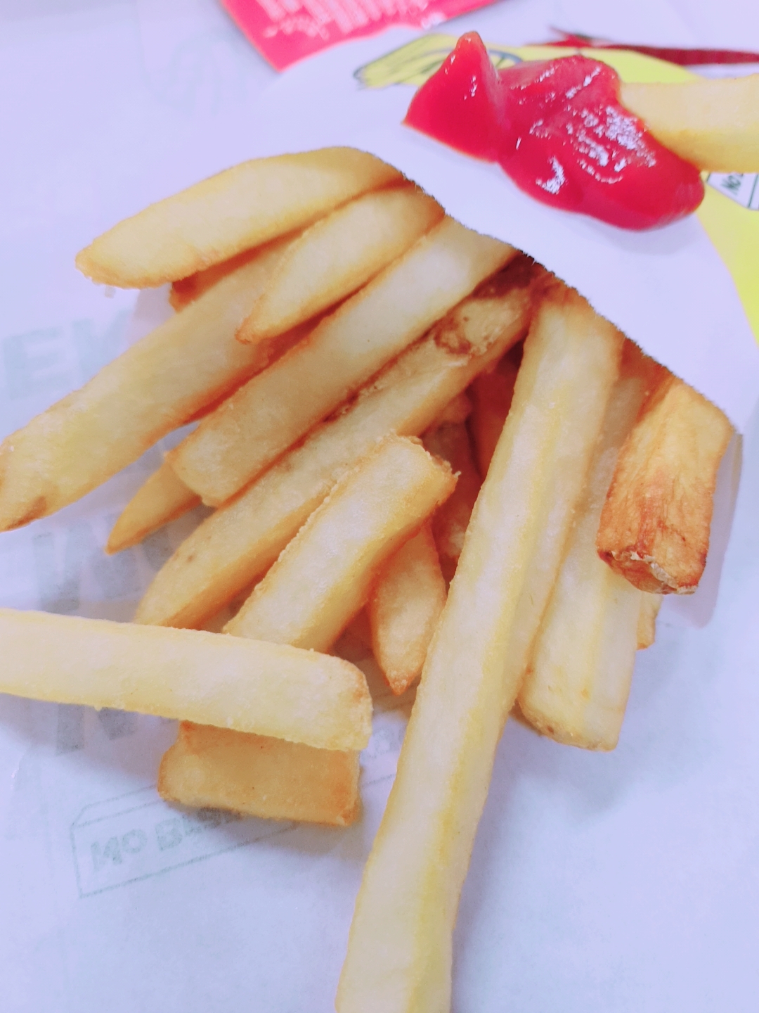 감자튀김의 양은 버거킹 일반 사이즈와 비슷했어요. 두께도 버거킹 감자튀김과 비슷하고, 얇은 감튀 안좋아하는 저에게는 꽤나 만족스러운 비주얼이었습니다!