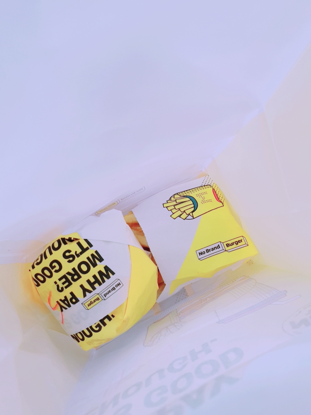쇼핑백에 노브랜드버거의 대표 문구가 적혀있네요.
