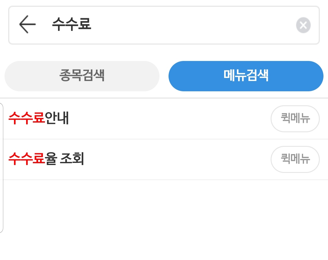 첫 번째로는 미래에셋대우 M.STOCK 홈> 돋보기 버튼 클릭 > '수수료율 조회' 검색