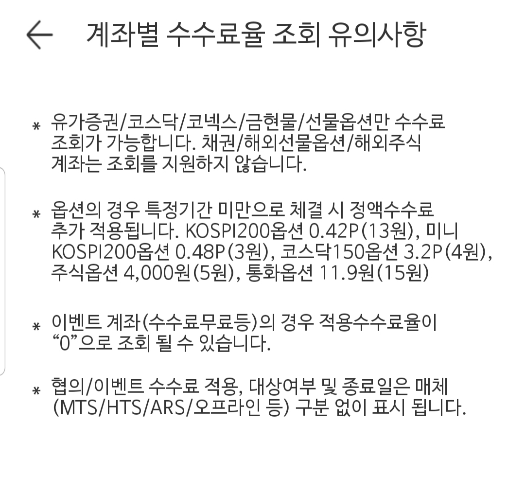 다만 채권, 해외선물옵션, 해외주식 계좌는 조회를 지원하지 않고요. 해외주식의 경우 어플이 따로 있기 때문에 그 어플에서 조회하시면 될 것 같습니다.