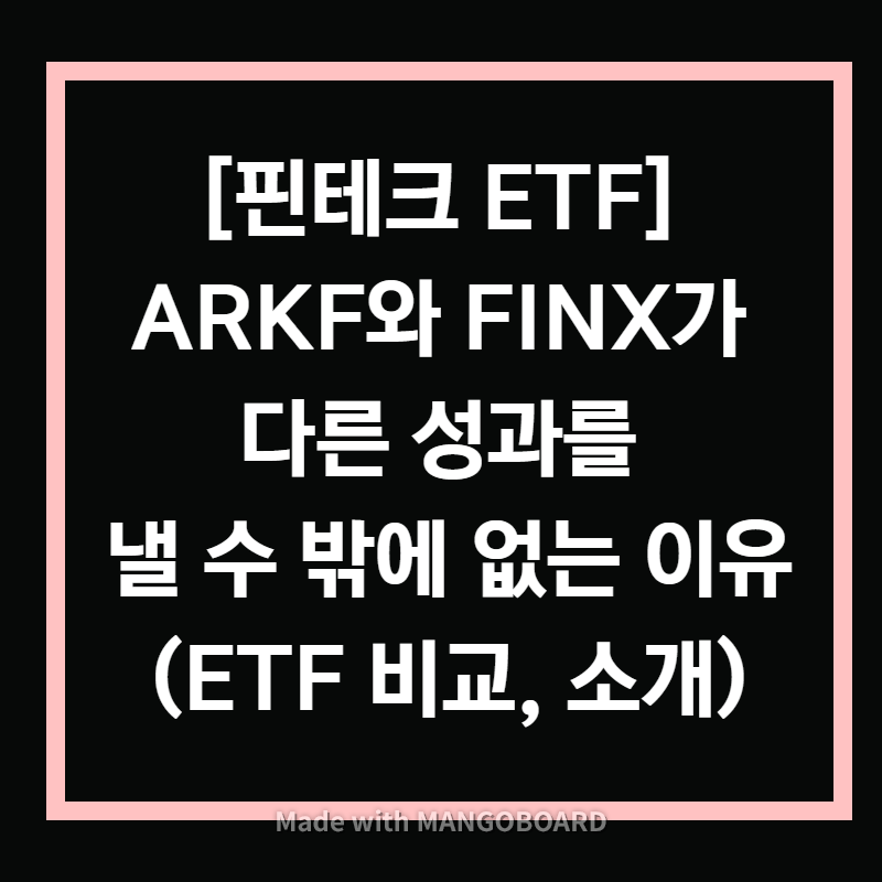 만약에 유럽 핀테크 시장이 아시아 핀테크 시장보다 잘 나갈 것 같다, 지수 추종 ETF가 마음이 편하다, 생각하시는 분들은 FINZ를 선택하시는 걸 추천하구요. 반면 아시아 핀테크 시장의 성장성을 더 좋게 보고 ARK invest 시리즈의 성과를 봤을 때 arkf도 믿을만 하다 싶으신 분들은 ARKF을 고르시는 걸 추천합니다.