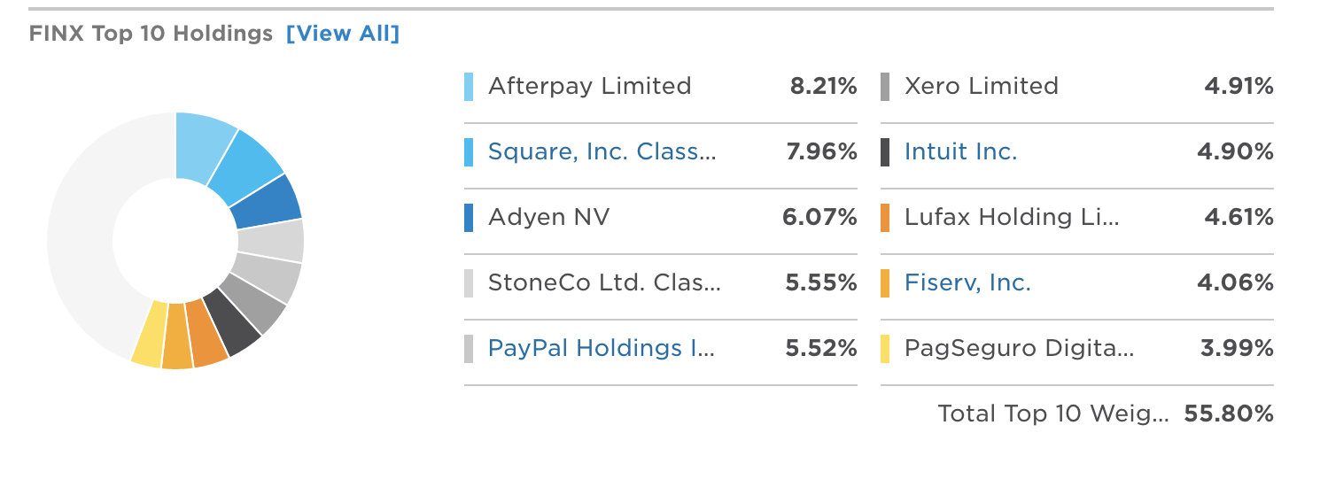 한마디로 요약하자면, FINZ는 미국과 유럽 핀테크 시장에 주로 투자하는 ETF라고 하면 되겠습니다.
