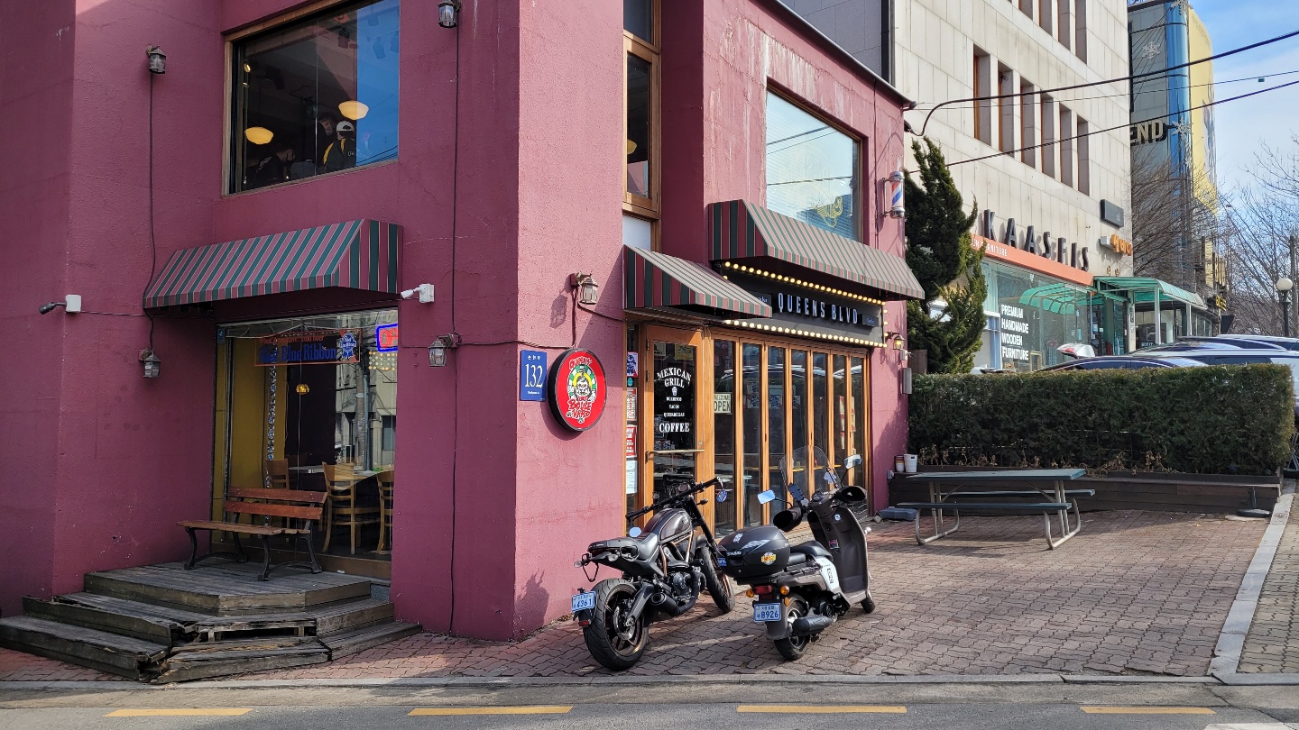 퀸즈블러바드는 양재역과 매봉역 사이에 위치해있는데요. 예전에 남자친구가 가자고 했다가 거절한 '네모오징어' 건물 옆에 있습니다. 건물이 분홍색이고 이 근방에서 힙한st 건물은 이 곳 뿐이라 눈에 띕니다.