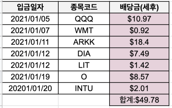 2. 1월 미국주식 배당금(세후) : USD 49.78