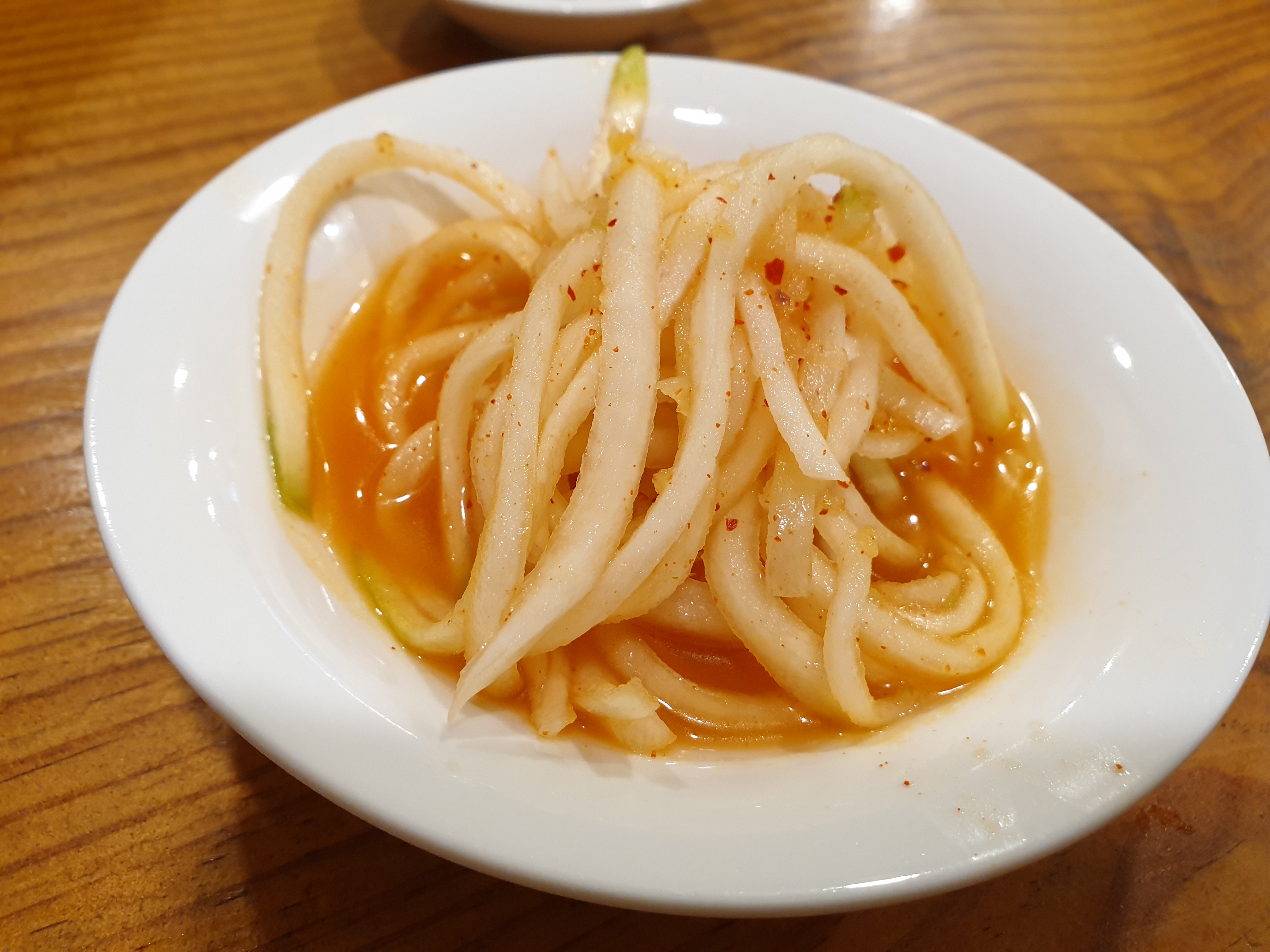 김치에 큰~ 특징은 없었습니다. 무생채는 시원한 맛보다는 식초향이 강했는데요. 국밥집에서 생명은 자고로 김치인데, 이 집은 만두집이라서 그런지 김치와 무생채에 힘을 준 느낌은 아니었어요.