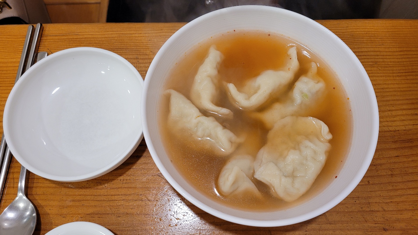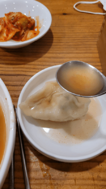 칼칼하고 맑은 육수, 그리고 두꺼운 만두피가 이 집 만두국의 특징입니다. 평양 냉면 육수처럼 간이 세지 않은 육수를 기대하신다면 아쉬울 것 같고, 두꺼운 만두피로 살짝 밀가루 맛이 나는 건 감안하셔야 할 것 같습니다(저는 수제비를 먹는 느낌으로 먹었어요). 가격을 감안하면 살짝 아쉽긴 하지만 깔끔한 한 끼로 기억에 남아 나중에 기회가 되면 다시 가보려고 합니다.