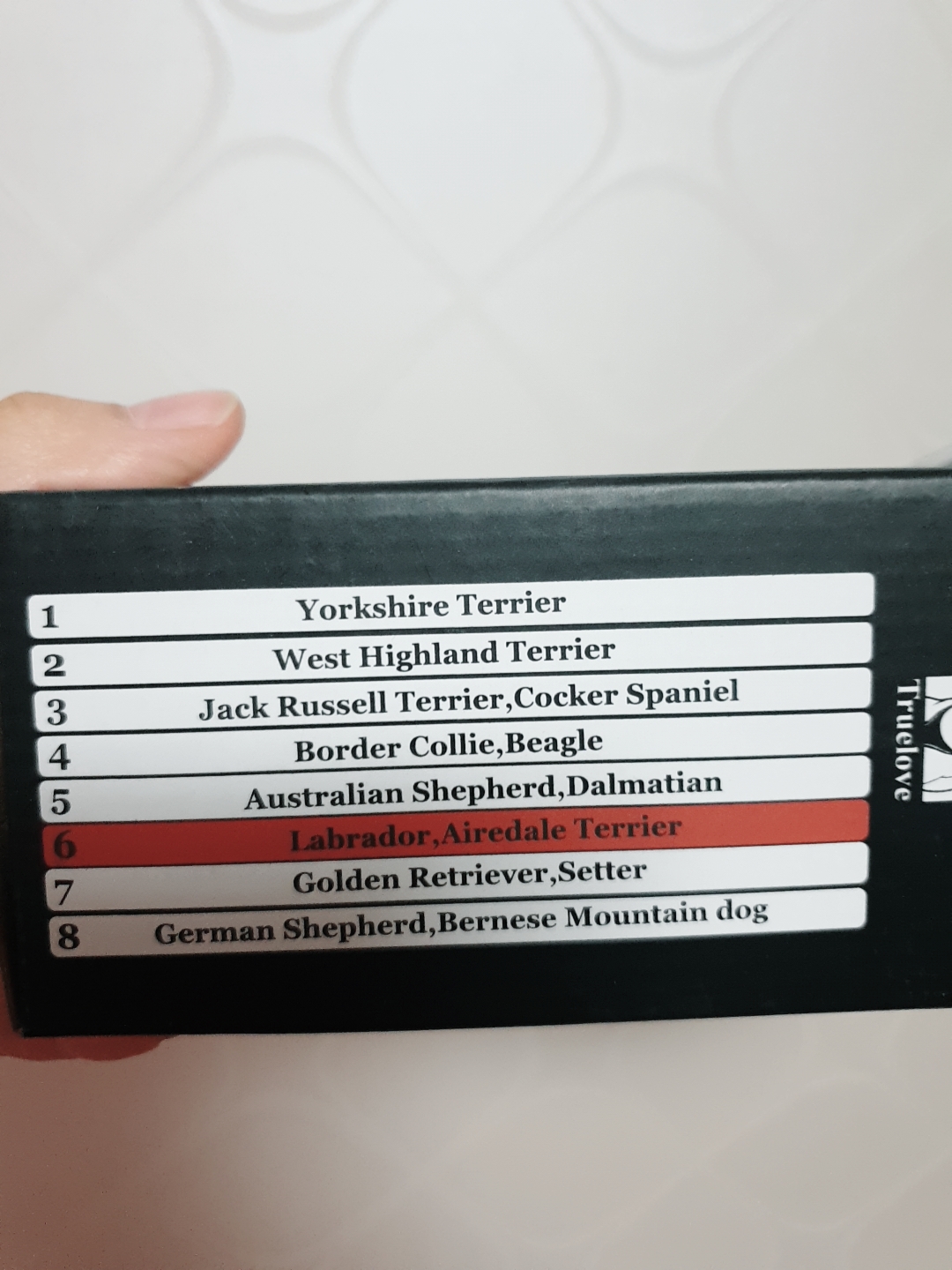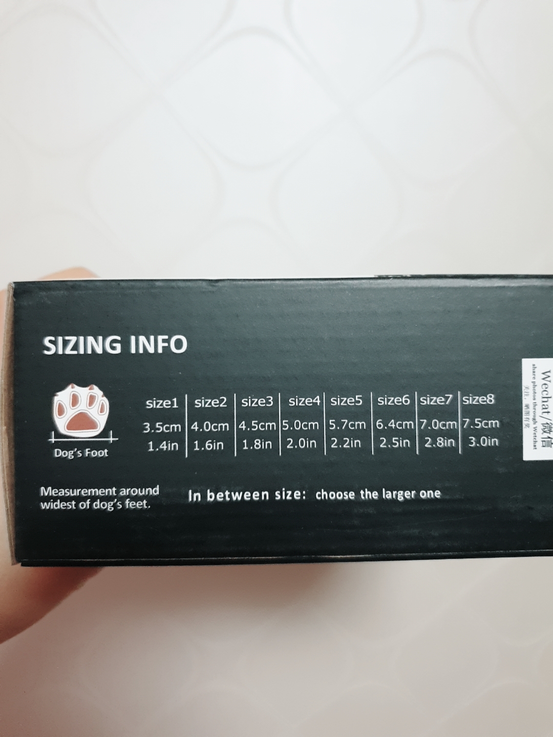간단하게나마 강아지 발을 재볼 수 있는 자가 박스에 그려져있습니다. 만약에 오프라인으로 구매하시는 거라면 강아지 발을 한 번 대보시는 게 낫겠어요.