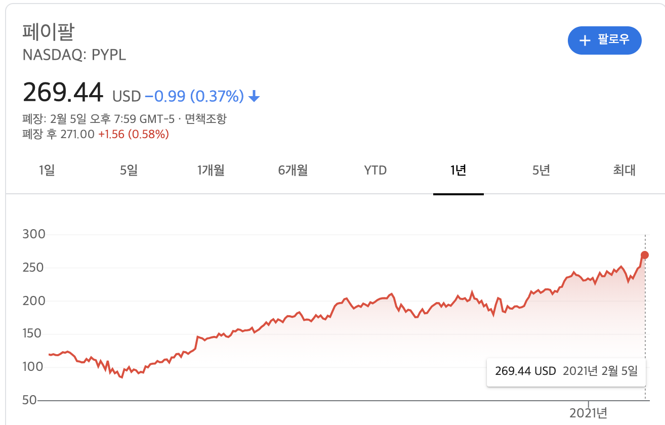 핀테크 업계의 대장주, 페이팔이 실적발표 이후에 하루 만에 7% 이상 주가가 상승하는 기염을 토했는데요. 코로나 이후에 무려 세 배 이상 주가가 상승한 페이팔은 주춤하고 있는 전자결제 대장주 비자와는 사뭇 다른 모습을 보입니다.