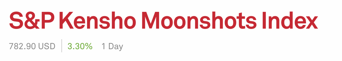그 중에서도 Moonshots Index는 Direxion만이 사용할 수 있으니 S&P Kensho Moonshots Index를 추종하는 ETF를 매수하고 싶으신 분들은 Moon ETF를 사셔야 되겠지요.