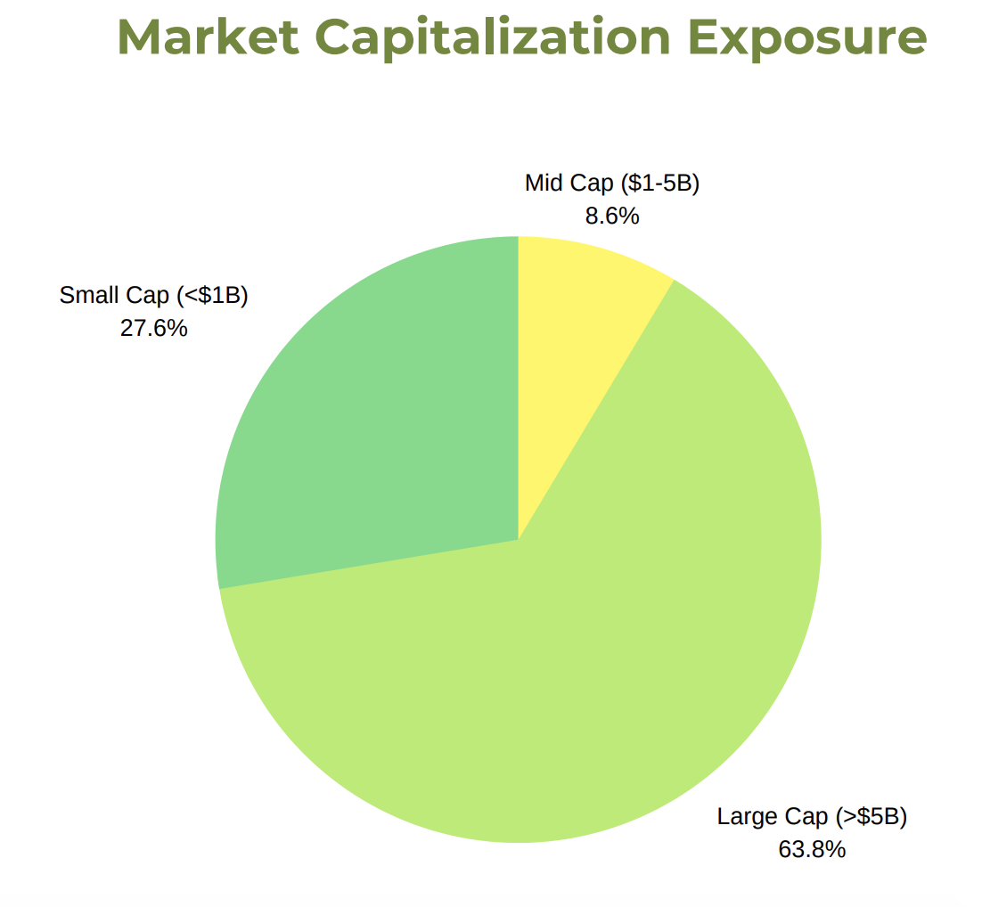 기업 규모 측면에서는 대형주에 63.8%, 소형주 27.6%, 중형주 8.6%에 투자하고 있습니다.