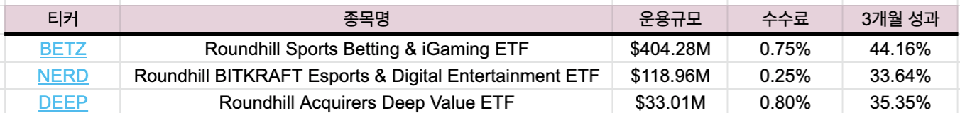 그들이 운용하는 ETF 중, 스포츠 베팅과 게이밍에 투자하는 ETF인 BETZ가 운용규모가 4억 달러를 기록하며 가장 규모가 큰 ETF인데요. 3개월 성과가 40% 이상으로 단기적 성과 측면에서는 칭찬할 만한 수준이네요. 다만 운용규모는 ARKK가 273억 달러인 것을 감안하면 작아도 많이 작은 운용사라고 보시면 됩니다....