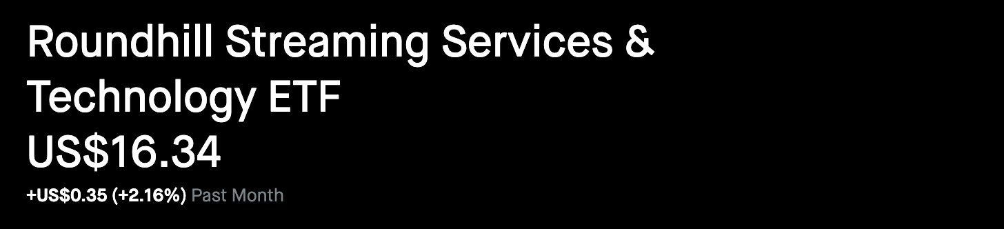 SUBZ etf는 Roundhill 이라는 운용사에서 운용하는 액티브 ETF로 개시한지 얼마 되지 않은 신생 ETF(2021/2/10)입니다. Roundhill은 소비자들이 케이블 TV 등의 전통적인 컨텐츠 플랫폼에서 OTT로 이동할 것이라는 확신을 가지고 해당 ETF를 출시했다고 합니다.