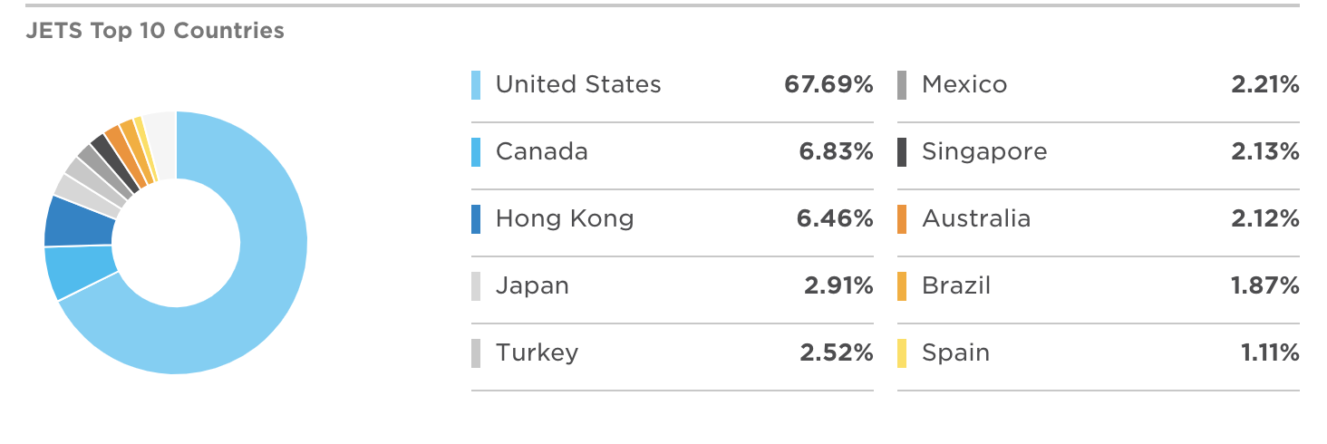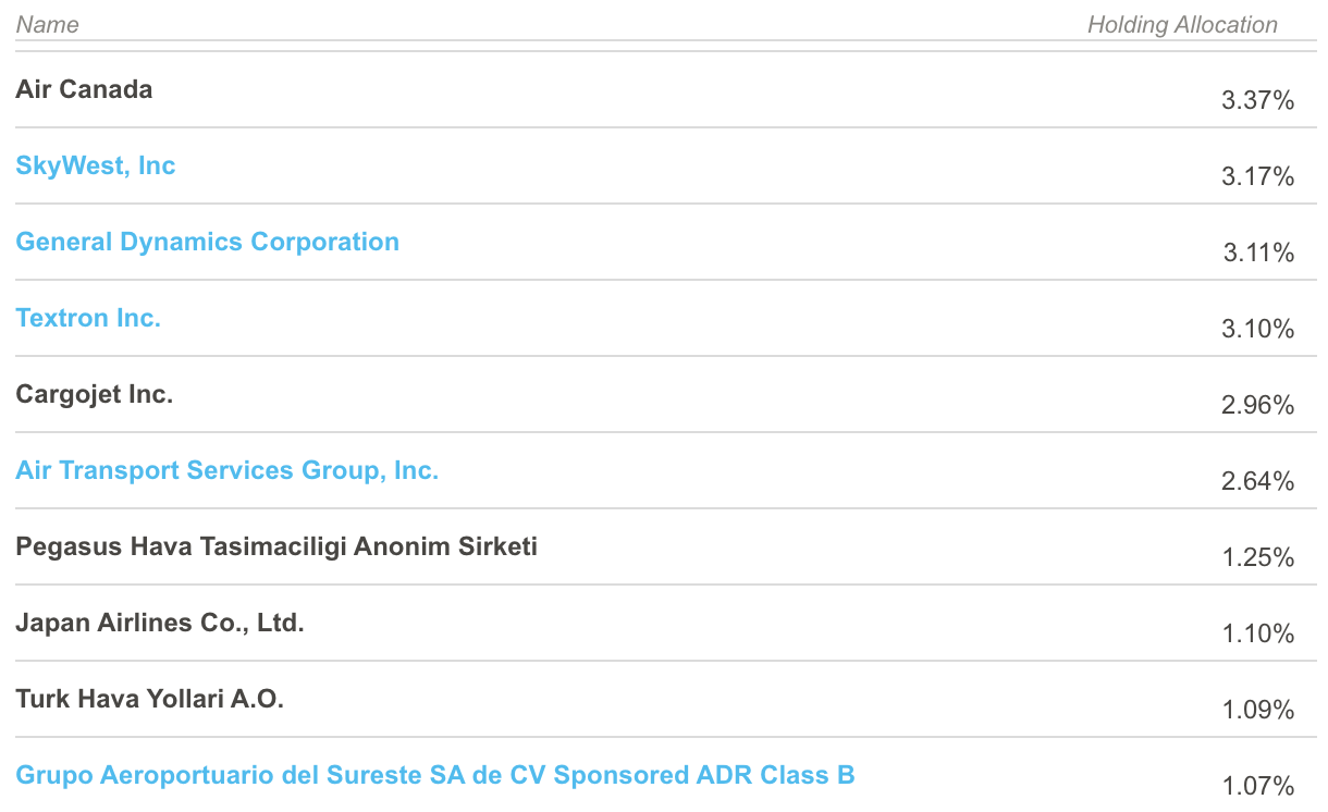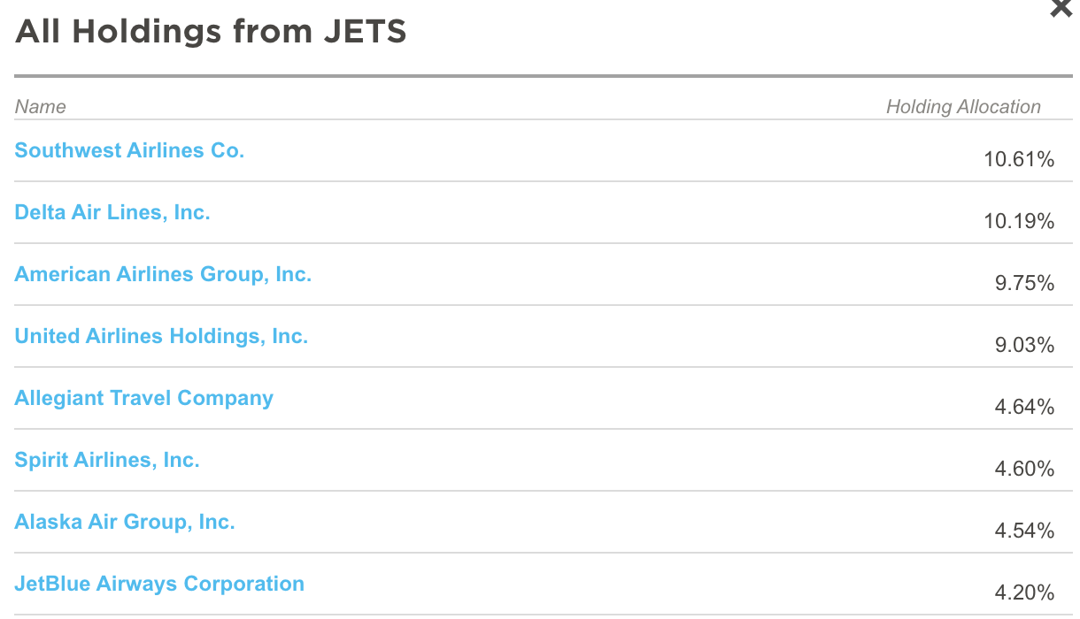 JETS는 전세계 항공사 또는 항공 인프라, 공항 등에 분산투자하는 etf입니다.