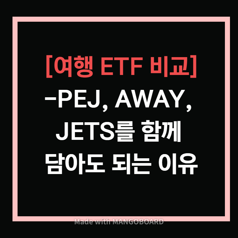 지금까지 여행관련 etf를 하나하나 살펴보았는데요. 보신 바와 같이 pej, away, jets는 겹치는 기업이 하나도 없습니다. 여행이라는 동일한 범주에 속해있다 하더라도 여행산업 내에서도 수많은 업종이 있기 때문에 세 개의 etf가 각기 다른 개성을 가지고 움직이고 있습니다. 세 개의 ETF를 모두 보유하신다면 여행 산업 전반에 걸쳐 투자하실 수 있는 것일텐데요.