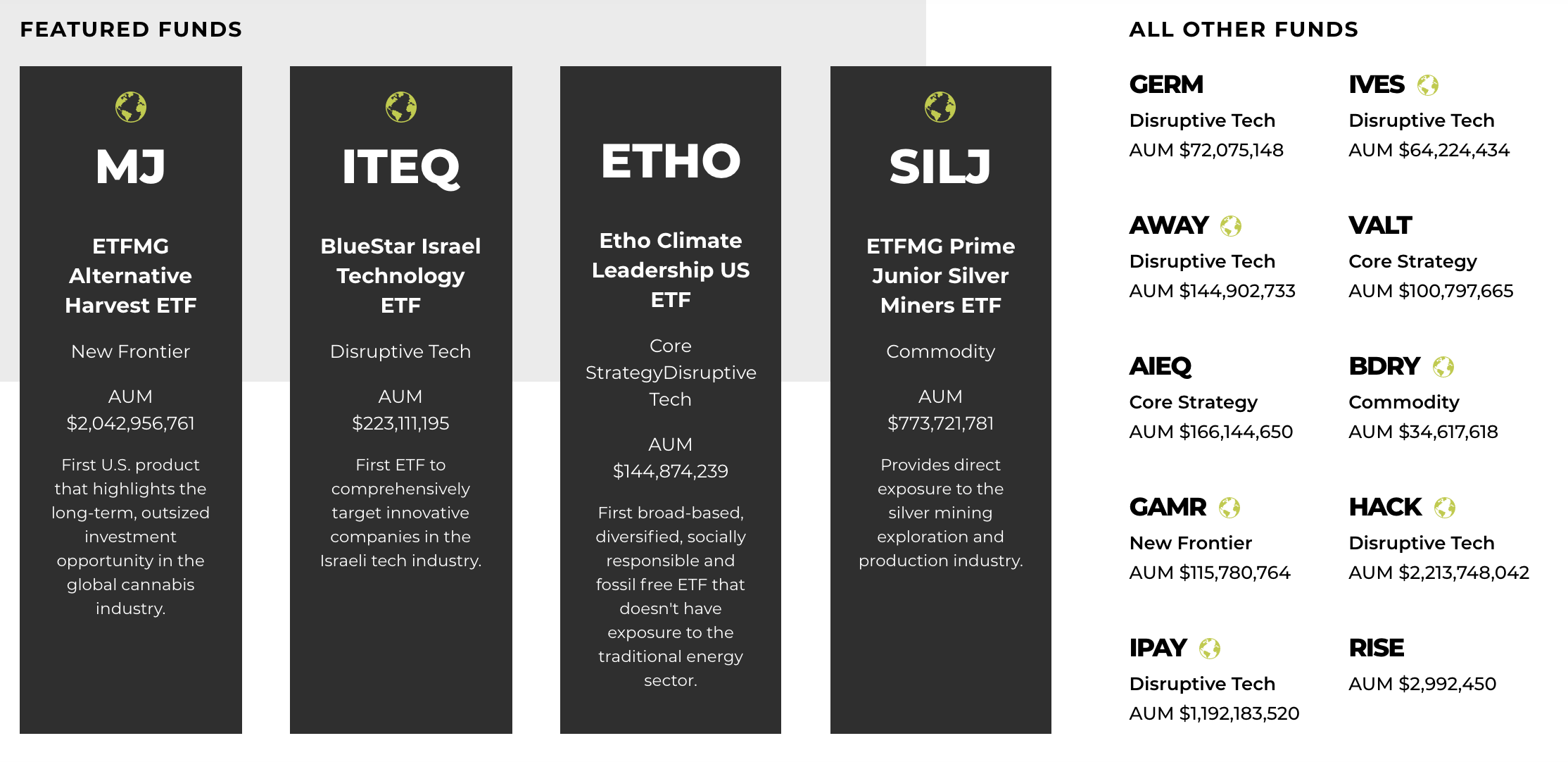 2020년 2월 12일에 출시된 AWAY etf는 코로나19 직격타를 제대로 받은 펀드입니다...출시되자마자 코로나가 시작되고 근 1년간 골골대다가 이제서야 회복한 모습입니다. 운용사 입장에서는 꽤나 심란하지 않았을까 싶은 etf네요. ETFMG(ETF managers group)라는 운용사는 기술을 테마로 한 ETF를 만드는 운용사인데, 운용사 순위(운용 규모 순)로는 25위로 그렇게 큰 운용사는 아닙니다.